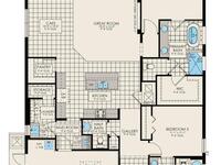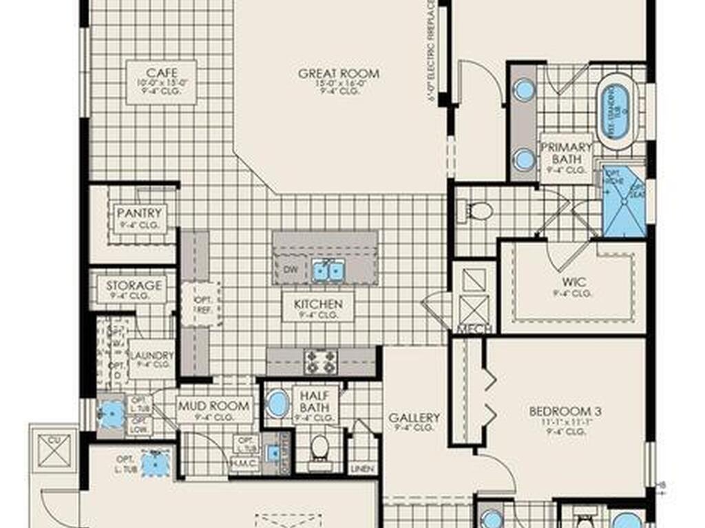 This Morgan is a three bedroom, two and a half bath home with distinctive taste. The open floor plan includes a great room with 6' linear electric fireplace, gourmet kitchen with walk-in pantry and 9' sliding glass door at cafe that creates a perfect backdrop for entertaining. This home features a primary bath with freestanding tub and separate shower and has a water view off the lanai.