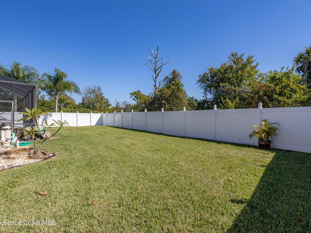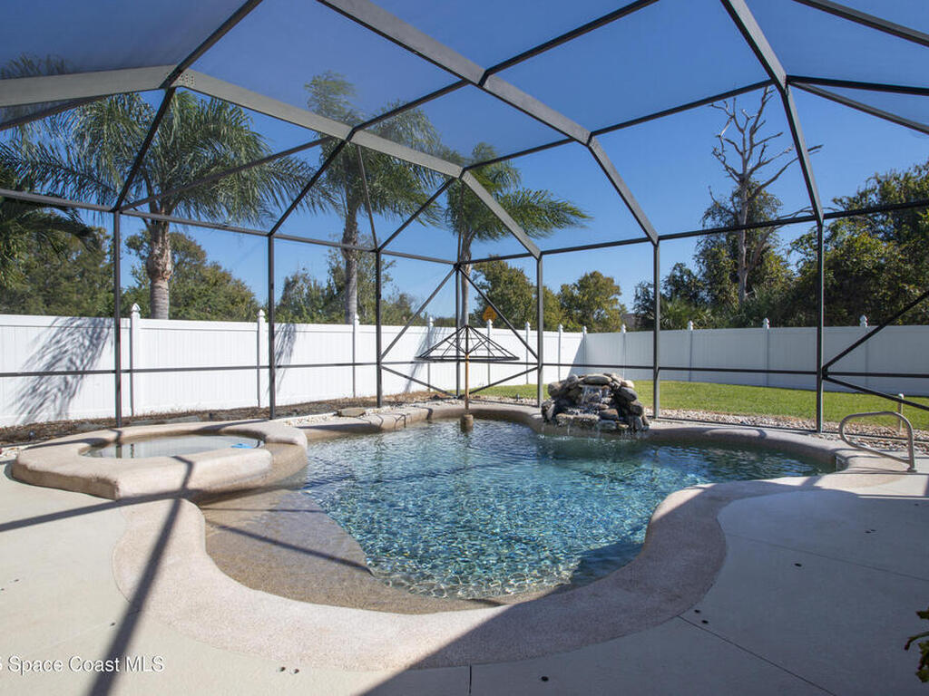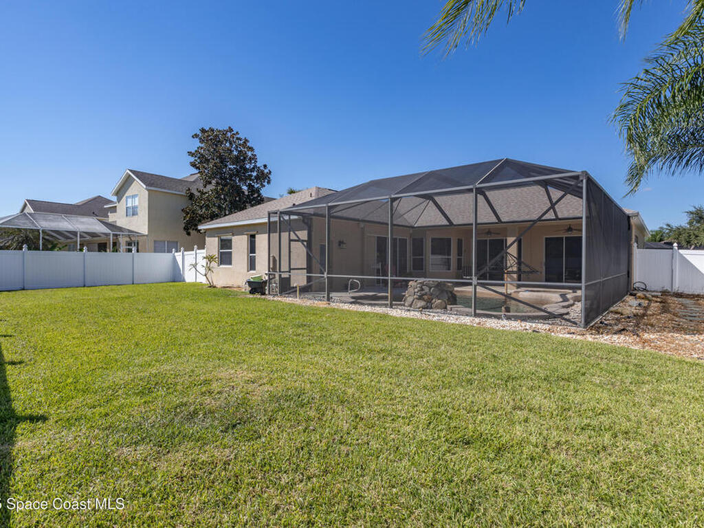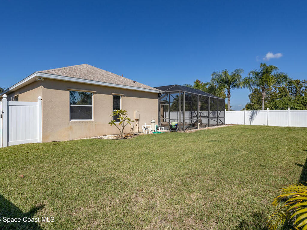 Welcome to this beautifully maintained 5-bedroom, 2.5-bath home located in the desirable Grand Haven community offering quick access to I-95, US-1, and the area's gorgeous beaches. Step inside to discover an open and airy floor plan with high ceilings and rich wood floors that create a warm, inviting atmosphere throughout. The spacious kitchen is the heart of the home, featuring granite countertops, a center island, breakfast bar, and a bay window nook overlooking the sparkling pool perfect for casual meals or morning coffee.The home offers a large inside laundry room complete with a utility sink for added convenience, and a 3-car garage providing plenty of space for vehicles, storage, or hobbies. Enjoy Florida living at its best in your natural screened pool area with spa and waterfall feature an ideal setting for relaxing or entertaining guests. The privacy-fenced backyard offers a tranquil retreat with plenty of space to play, garden, or unwind. AC'18, Roof '22, Wtr Htr '24