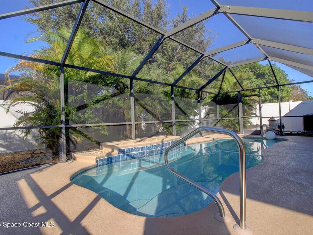 Desirable Gated West Melbourne Landings home. Very well-maintained. Freshly painted exterior and pool deck. Beautiful Salt Chlorinated Pool. Quaint screened in front porch. Kitchen has wood maple cabinetry and granite counters, open to family room. 3 Bedrooms with great closet space. Primary bedroom has its own ensuite. 2023 Roof and 2022 AC. Screened in front porch and pool lanai.