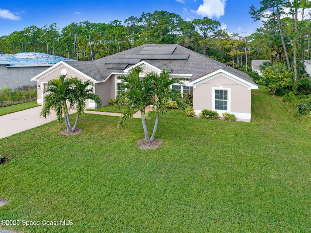 Discover Your Dream Home: Modern Comfort Meets Sustainable Living!Step into this exceptional 2017 concrete-block residence, where modern design effortlessly blends with energy-efficient living. This meticulously maintained 4-bedroom, 2-bathroom home offers a versatile layout, perfect for families, remote professionals, and those seeking ultimate relaxation. Key Features You'll Love:Sustainable Savings: Say hello to lower energy bills and a greener lifestyle--this home comes equipped with solar panels.Flexible Living Spaces: A generous family room is ideal for gatherings, while a dedicated formal dining area sets the stage for memorable meals. The versatile bonus space can easily become a formal living room, den, a 5th bedroom or the perfect home office.Privacy & Comfort: The desirable split floor plan ensures tranquility, especially for the luxurious primary suite.Stylish Kitchen: A cozy, open-concept kitchen features 36'' cabinets, a convenient breakfast bar and a sun-drench