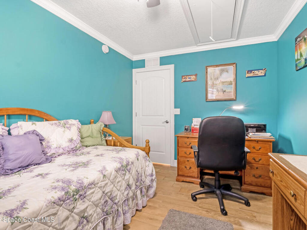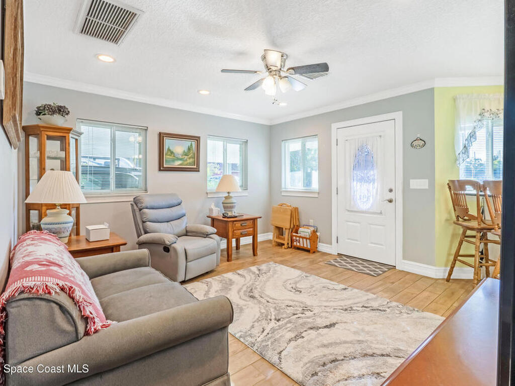 Enjoy lake views right from your front porch in this beautifully maintained 1-bedroom, 2-bath home with a spacious bonus room--ideal for a guest suite, home office, or hobby space. Step inside to a bright, open kitchen offering plenty of cabinets, counter space, and storage--perfect for cooking or entertaining. The primary suite features a large walk-in closet and a private bath for added comfort. Outside, enjoy a covered carport, and a large storage shed roomy enough for your golf cart or tools.Located in a sought-after community with year-round heated pool, golf course, pickleball and tennis courts, clubhouse, and planned activities, there's always something to enjoy. Just a short drive to Orlando, the airport, and Florida's beautiful beaches. Experience resort-style living with a front-row seat to Florida's famous rocket launches!