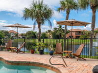 Welcome to Florida living at its finest! This stunning luxury home features 5 bedrooms, 3 full bathrooms, and 3, 805 sq ft of beautifully designed living space. Enjoy multiple living areas, wine & cocktail bar, formal dining, & THEATRE ROOM with raised seating & a new $20K projection and sound system. IMPACT WINDOWS AND DOORS with plantation shutters, LVP, and tile flooring. The inviting family room with a gas FIREPLACE featuring stamped coral tile opens to a chef's kitchen with granite countertops and NEW stainless appliances. The spacious primary suite offers a private sitting room and his-and-hers WALK IN CLOSETS Additional upgrades include (2025) WHOLE HOME WATER FILTRATION SYSTEM, (2022) HVAC, & a tankless water heater. Step outside to your oversized covered patio w/ retractable awnings, roll-down shades, and a sparkling SALTWATER POOL with NEW (2025) pump, heater, & salt cell. Enjoy resort-style amenities--pool, clubhouse, gym--and top-rated schools just minutes from the beach!