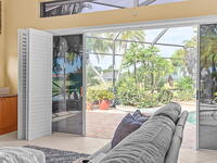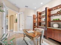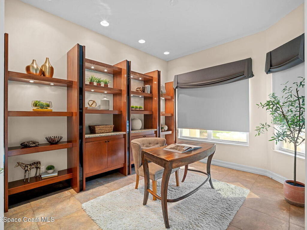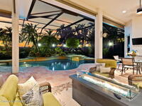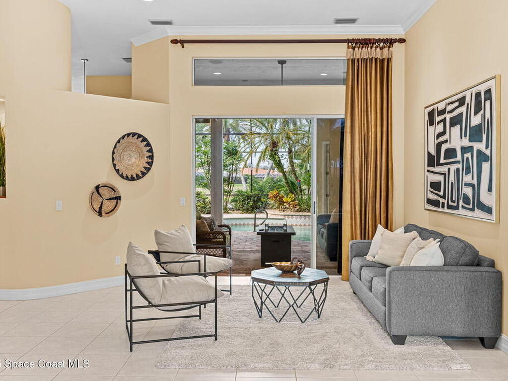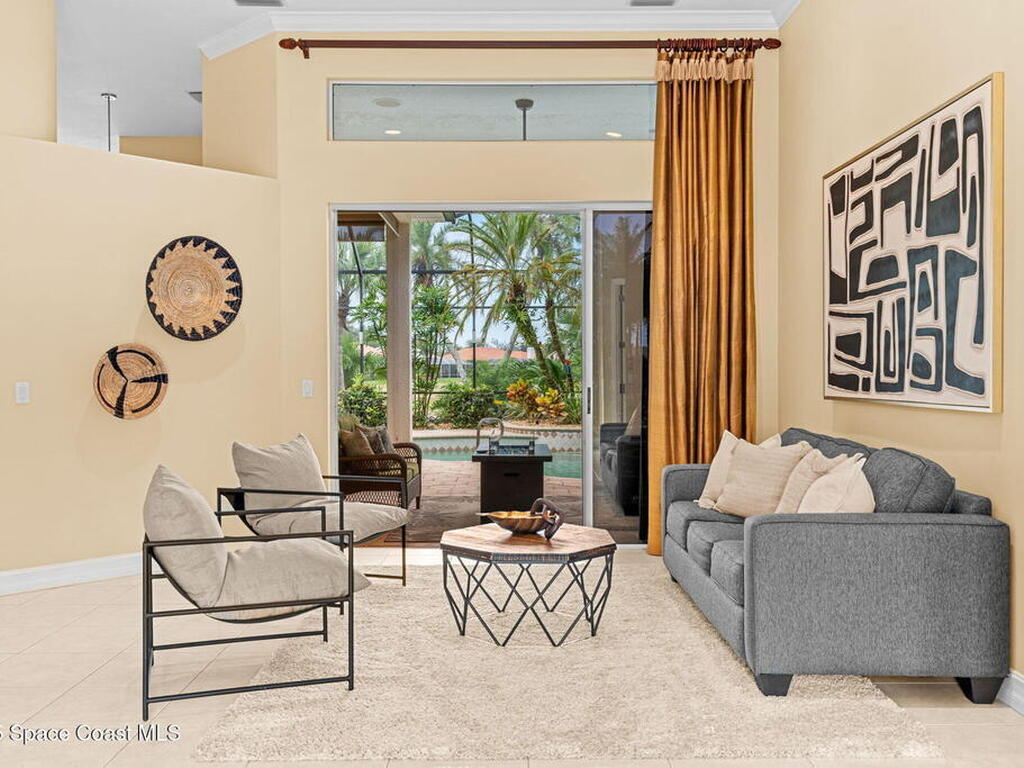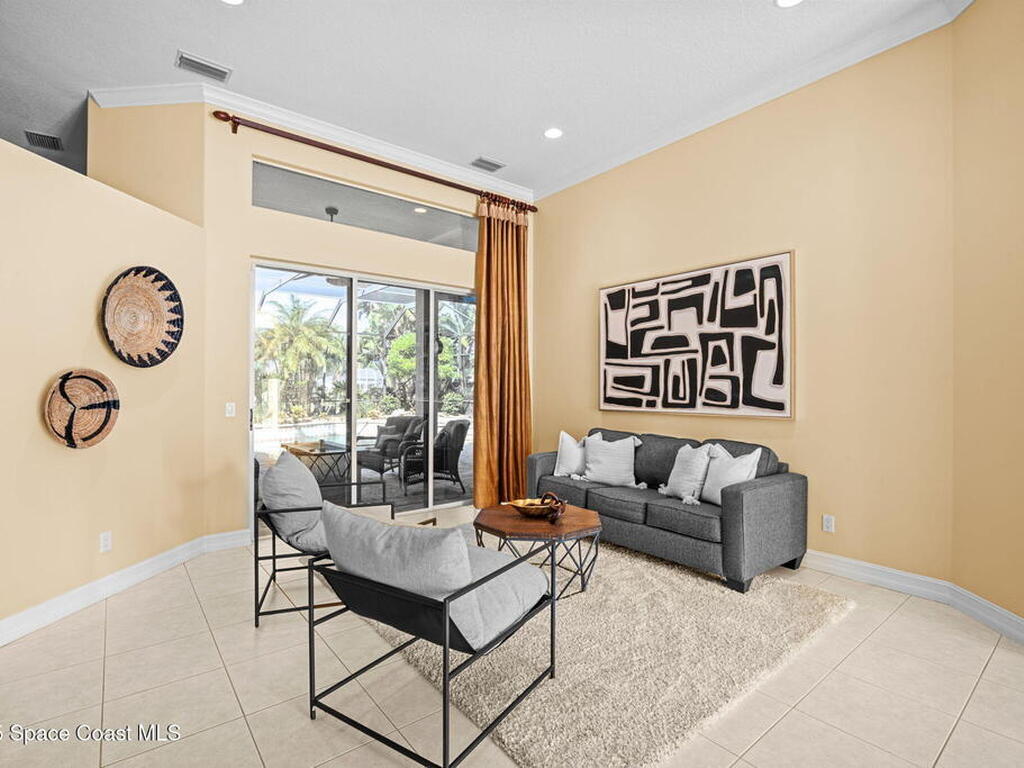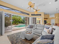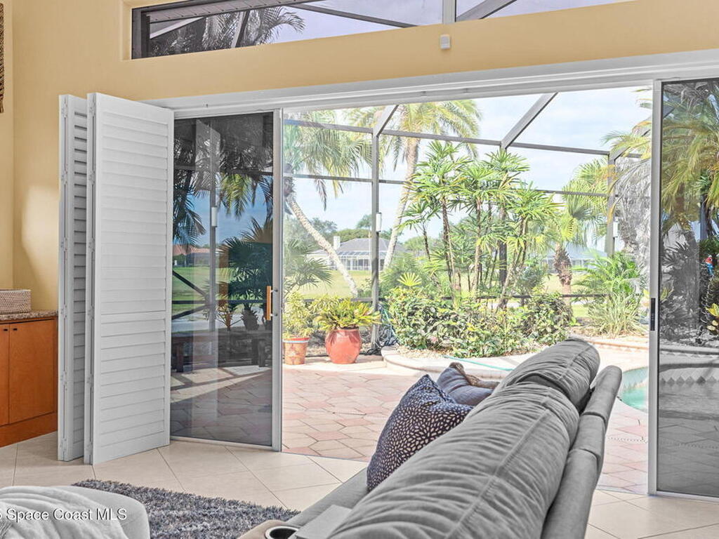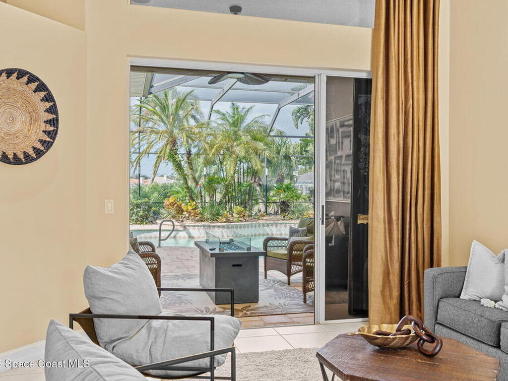 Luxury living in Baytree! Located on the 8th fairway in gated Saddleworth, this elegant single-story home offers over 3, 150 SF of open living with high ceilings, plantation shutters, tile floors, and premium finishes. Gourmet kitchen features granite countertops, large island, gas cooktop, Bosch dishwasher, new refrigerator, walk-in pantry, and breakfast nook overlooking the pool. Spacious primary suite with sitting area, dual custom closets, Jacuzzi tub, walk-in shower, and aquarium window. Custom office with built-ins plus 2 additional guest rooms. Enjoy resort-style outdoor living with screened lanai, covered seating, tropical landscaping, and heated saltwater pool & spa with waterfalls and LED lighting. Brick paver circular driveway, 3-car garage, natural gas generator, central vac, security system, hurricane shutters, and 2025 HVAC. Immaculate and move-in ready in one of Baytree's most desirable cul-de-sacs--minutes to top-rated schools, golf, parks, dining, and Suntree amenities
