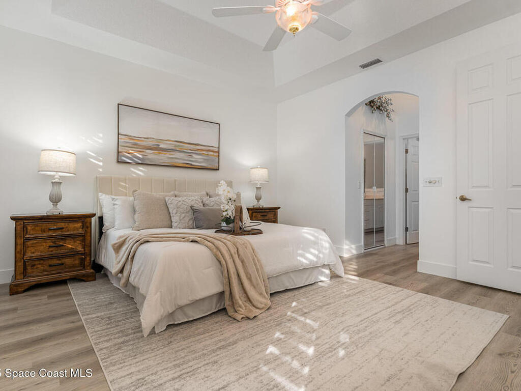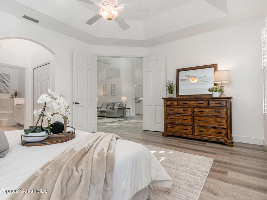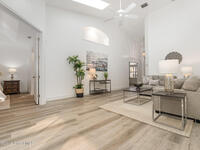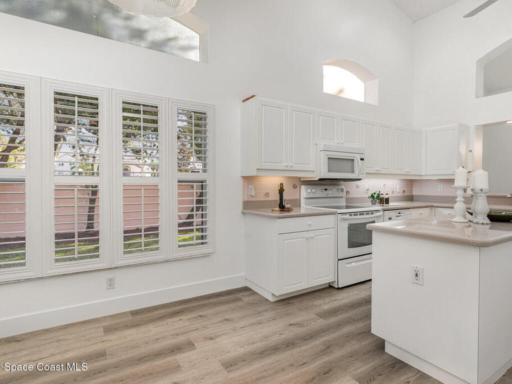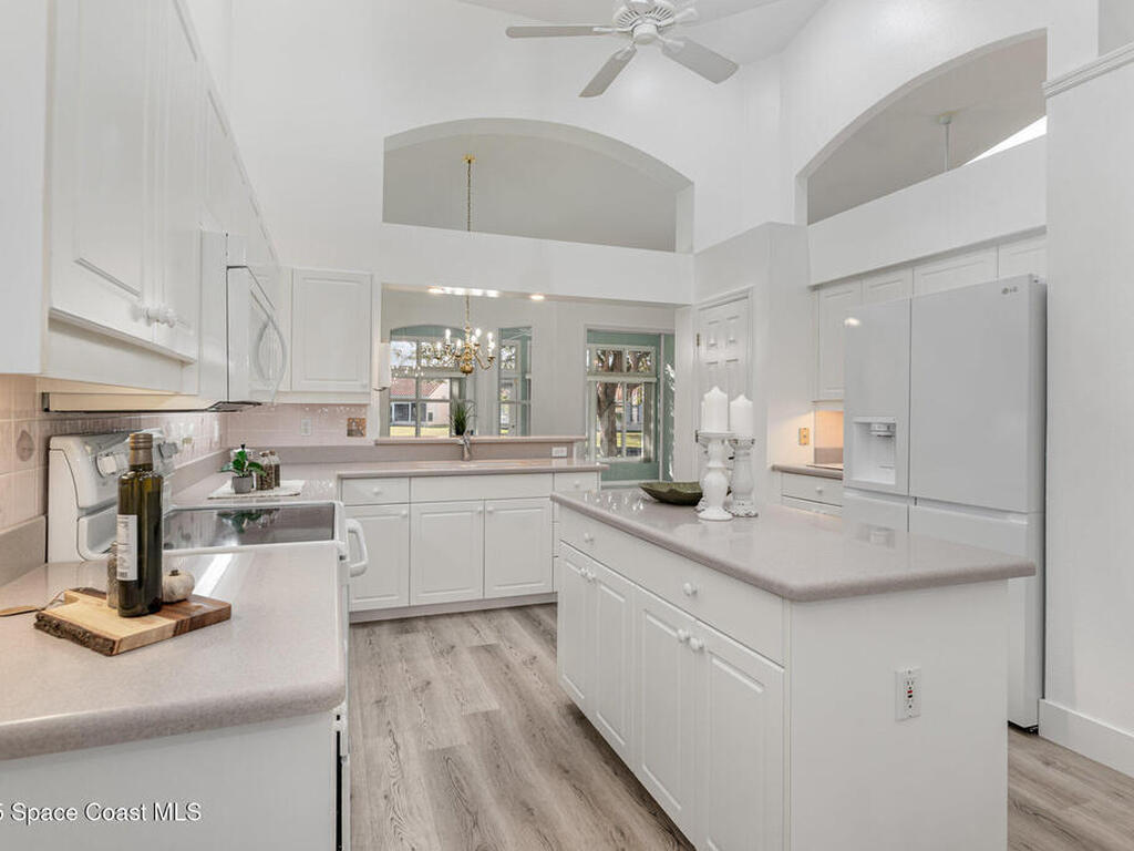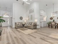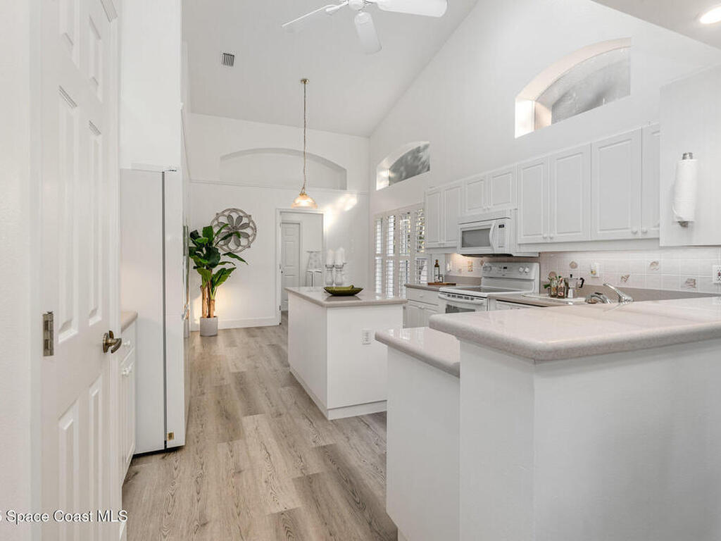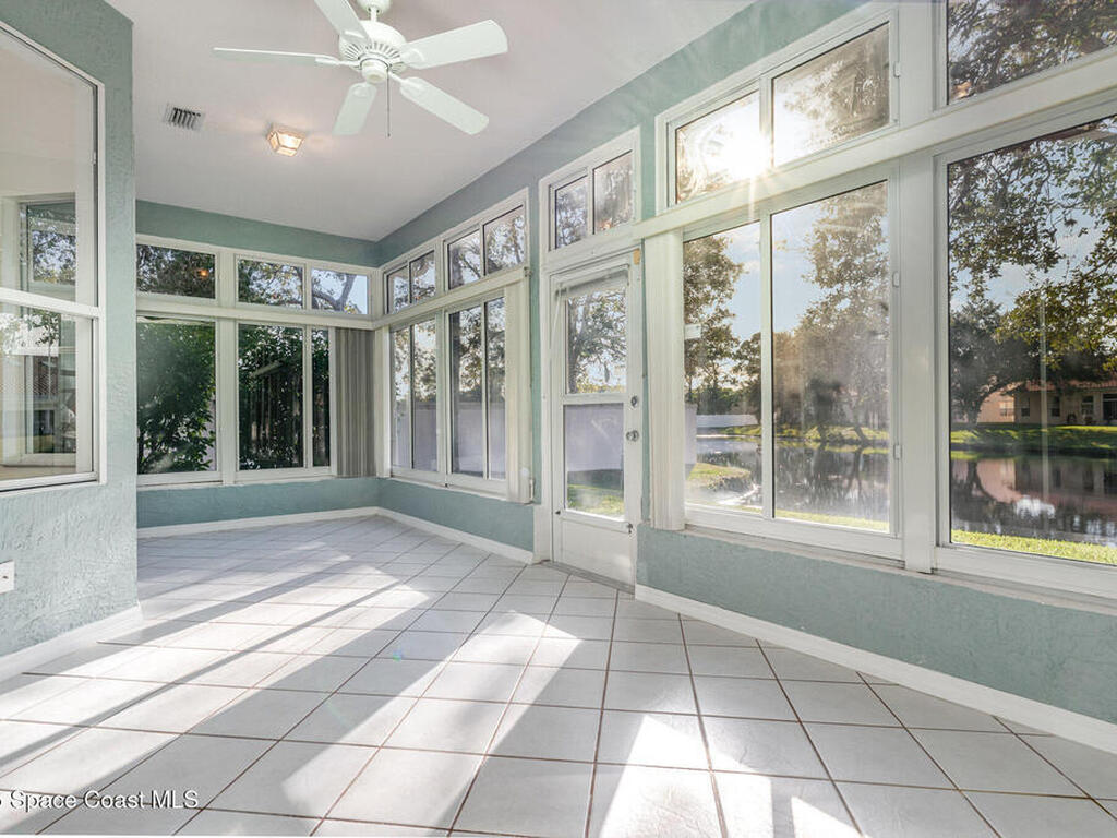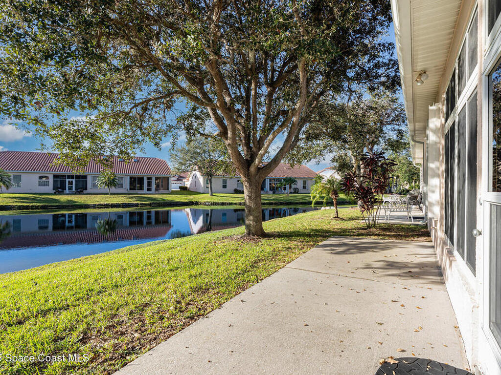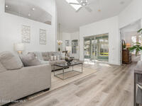 Welcome to this 3-bedroom, 2-bath villa in the sought-after gated community of Renaissance Pointe. This move-in ready home offers peaceful lake views filled with wildlife, providing the perfect setting for relaxation and serenity. Enjoy Florida living at its best in the enclosed Florida room, ideal for entertaining or quiet mornings. Inside, you'll find freshly painted walls and ceilings, brand new luxury vinyl plank flooring, and vaulted ceilings that enhance the spacious feel. Situated in a cul-de-sac, the home also features a newer barrel tile roof (2024) for timeless appeal and durability. The open, low-maintenance layout offers comfort and convenience. Community amenities include a sparkling pool, private roads, and beautifully maintained grounds. The HOA covers lawn care, irrigation, pest control, exterior painting, roof repairs, and gate security. Conveniently located near shopping, dining, I-95, and US1