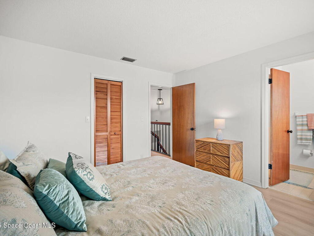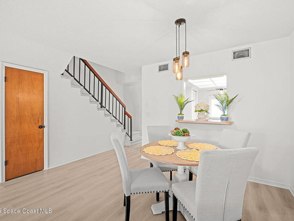 Welcome to easy coastal living in Indian Harbour Beach! Ideally located just one block from the beach, local shops, and restaurants, this beautifully maintained 2-bedroom, 2.5-bath townhouse offers the perfect blend of comfort and convenience. The main living area features LVP flooring throughout, with tile in the kitchen and a bright, open layout ideal for entertaining. Upstairs, you'll find two spacious primary suites, each with its own ensuite bath for added privacy. Enjoy outdoor living on the front porch or screened lanai, and take advantage of the community pool and expansive open green spaces. Complete with a 1-car garage and a low-maintenance lifestyle, this home captures the best of beachside living--relaxed, inviting, and just steps from the sand.