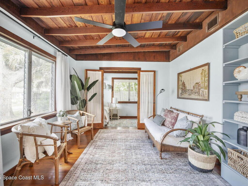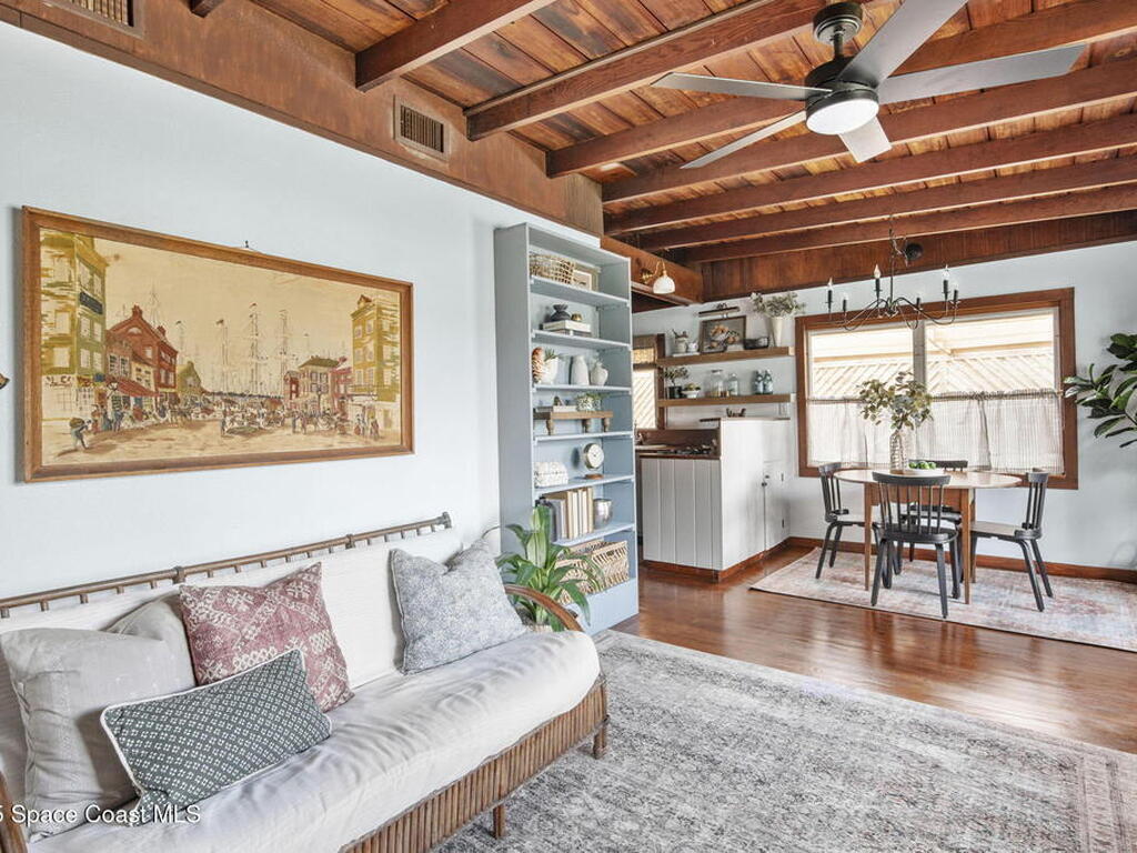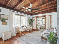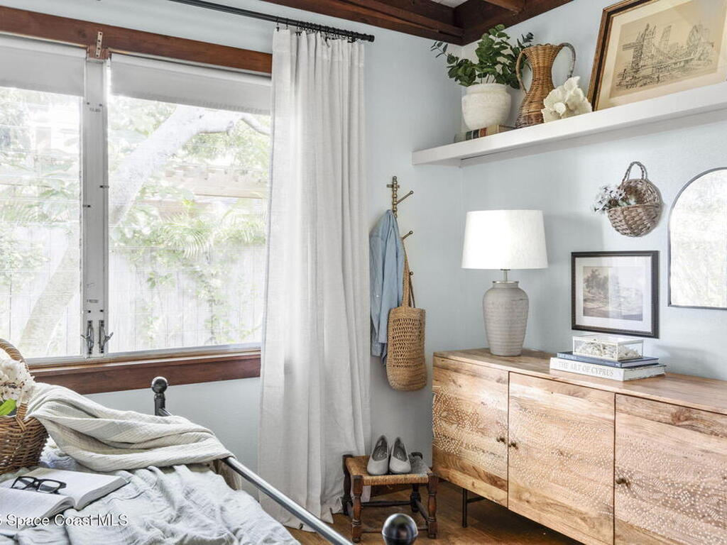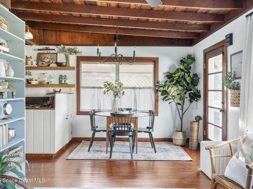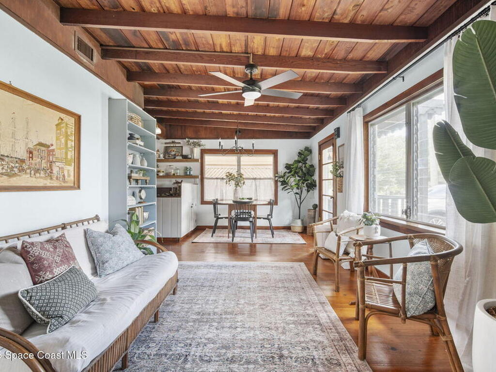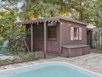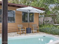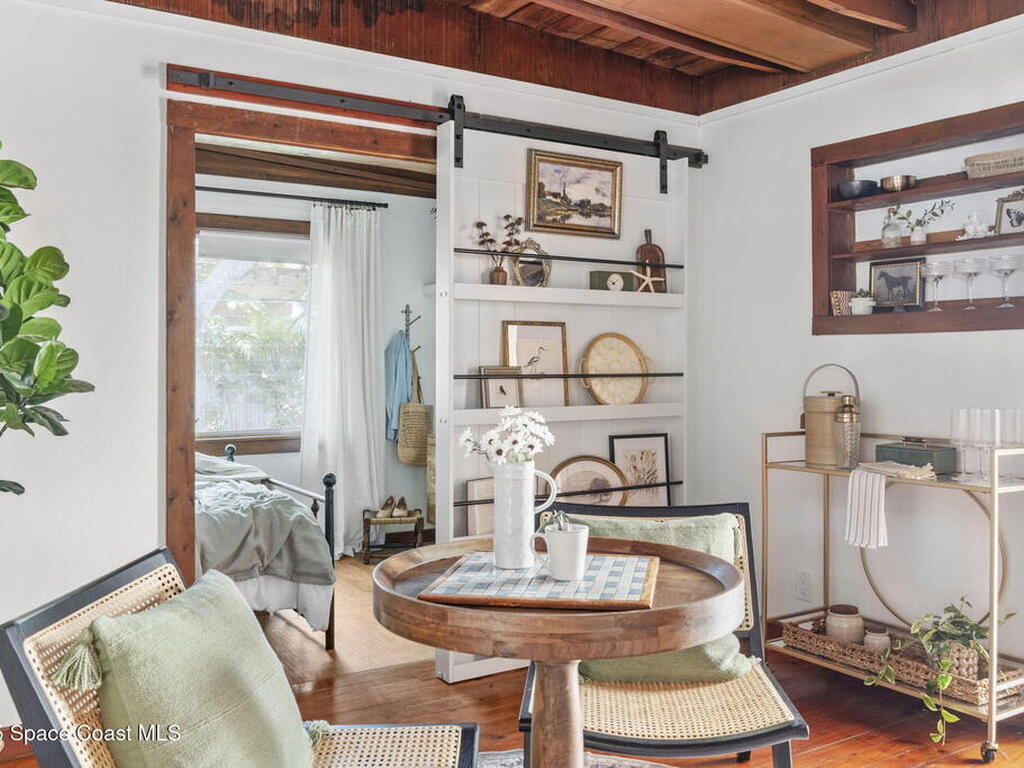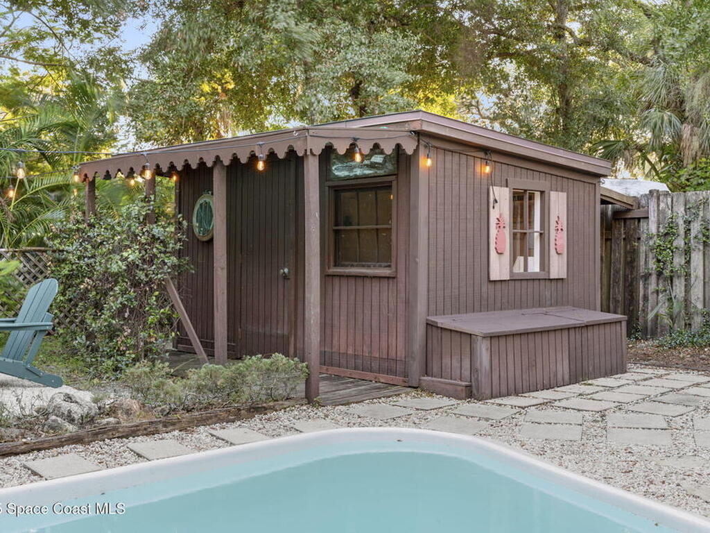 Rare opportunity to purchase a charming cottage with a pool in the most desirable location in the Eau Gallie Arts District. Step into a storybook retreat where historic character meets Florida vacation. You'll find many leather-bound books and it smells of rich cedar. This thoughtfully updated cottage captures the timeless feel of a bed and breakfast--making it an ideal opportunity for investors seeking a charming Airbnb or short-term rental in the thriving EGAD. Every detail tells a story with pristine original hardwood floors, cedar ceilings, doors and thoughtfully curated design details. Inside, you'll find two cozy living spaces, two inviting bedrooms including a primary suite with lounge and full bathroom. The family room opens to a pool bath, exceptional indoor laundry, and a private backyard oasis. Surrounded by lush Florida landscaping--towering oaks, swaying palms, and vibrant ferns--this outdoor space invites slow mornings and starlit evenings with its pool, dining area