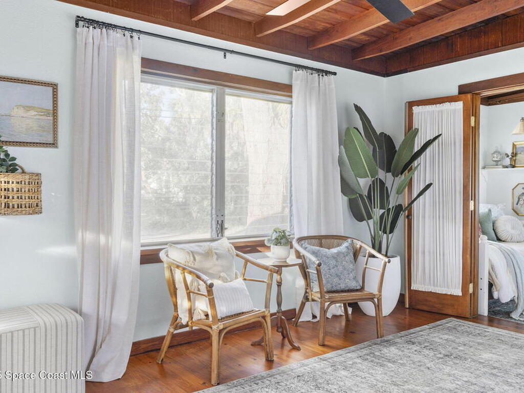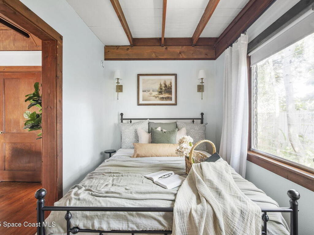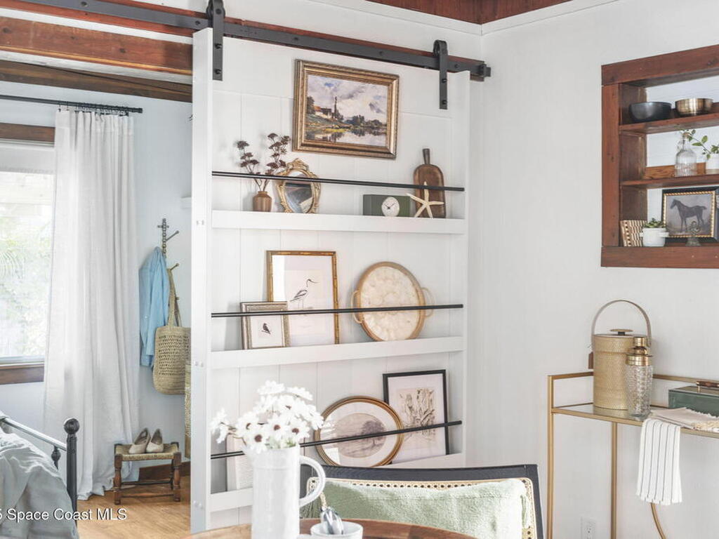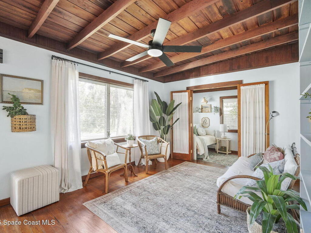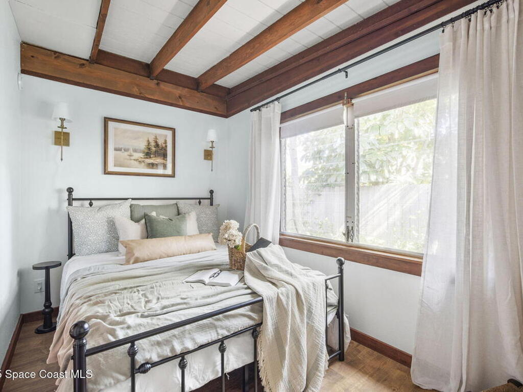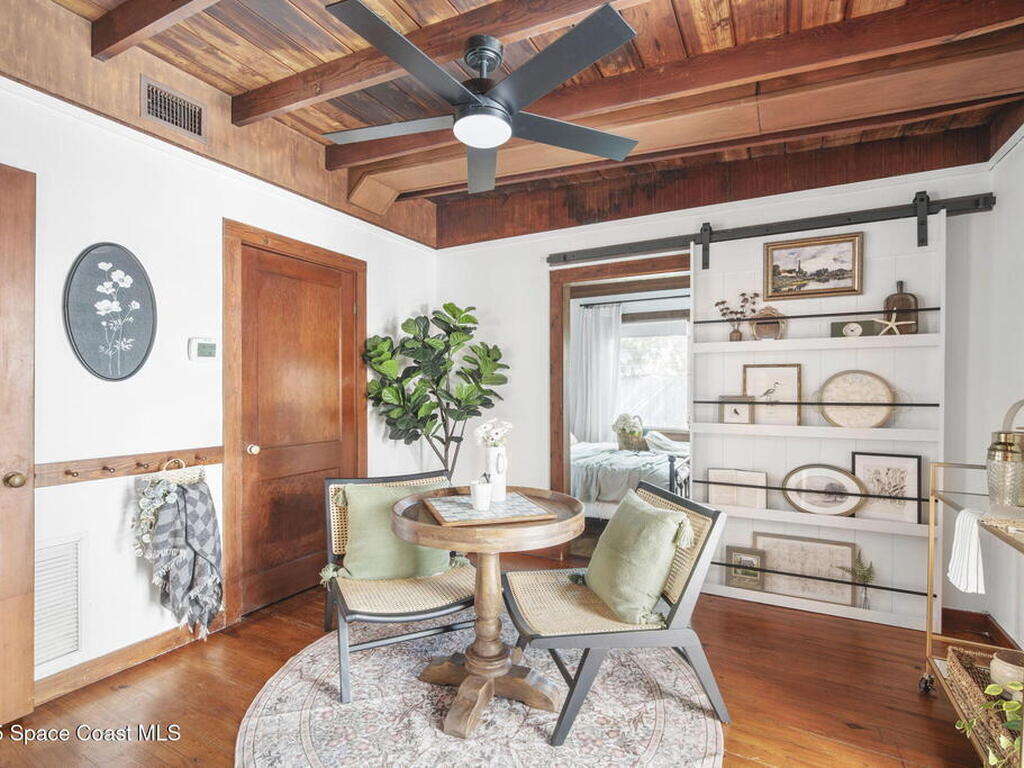 Rare opportunity to purchase a charming cottage with a pool in the most desirable location in the Eau Gallie Arts District. Step into a storybook retreat where historic character meets Florida vacation. You'll find many leather-bound books and it smells of rich cedar. This thoughtfully updated cottage captures the timeless feel of a bed and breakfast--making it an ideal opportunity for investors seeking a charming Airbnb or short-term rental in the thriving EGAD. Every detail tells a story with pristine original hardwood floors, cedar ceilings, doors and thoughtfully curated design details. Inside, you'll find two cozy living spaces, two inviting bedrooms including a primary suite with lounge and full bathroom. The family room opens to a pool bath, exceptional indoor laundry, and a private backyard oasis. Surrounded by lush Florida landscaping--towering oaks, swaying palms, and vibrant ferns--this outdoor space invites slow mornings and starlit evenings with its pool, dining area