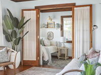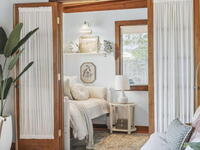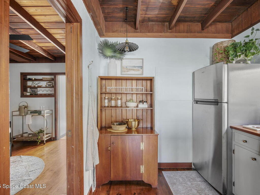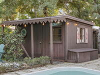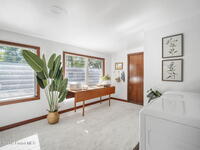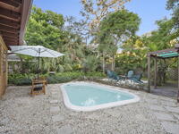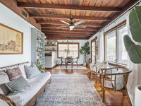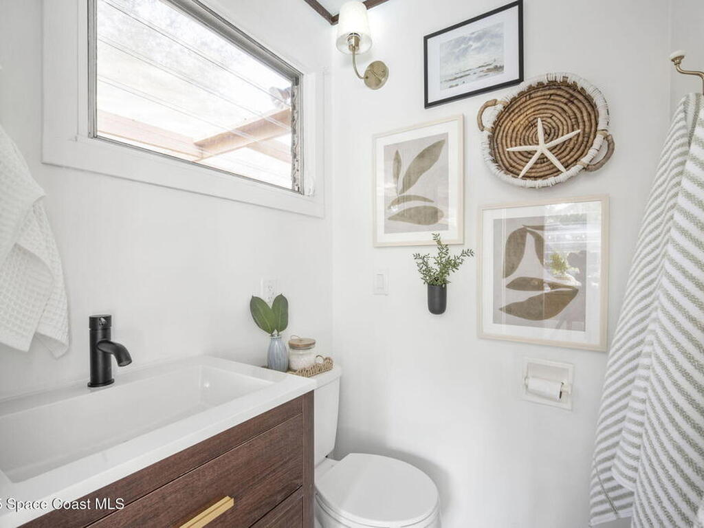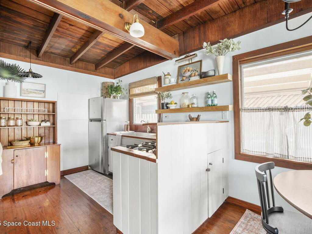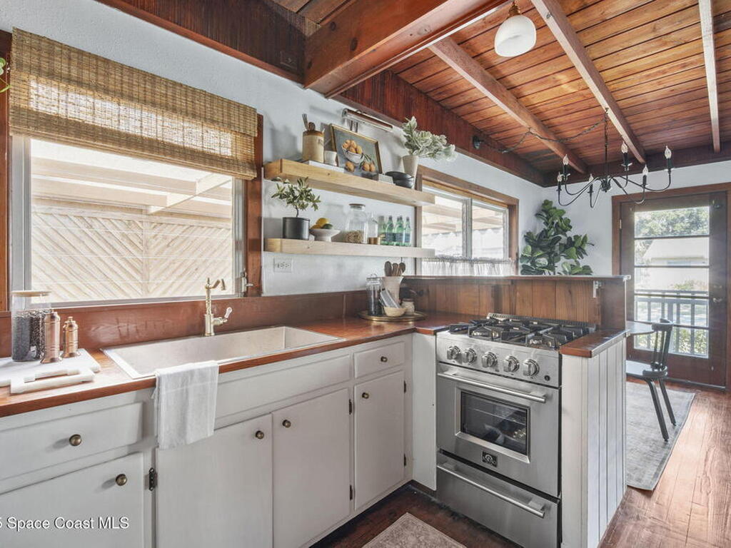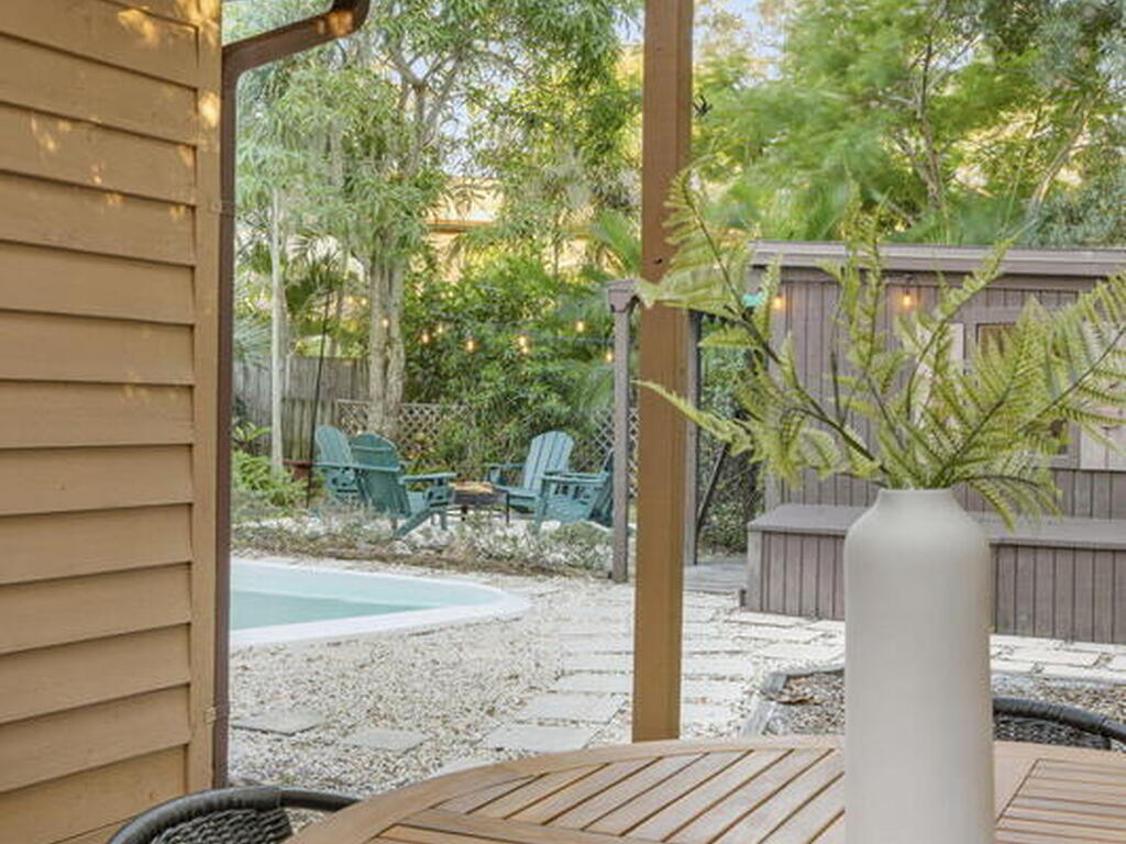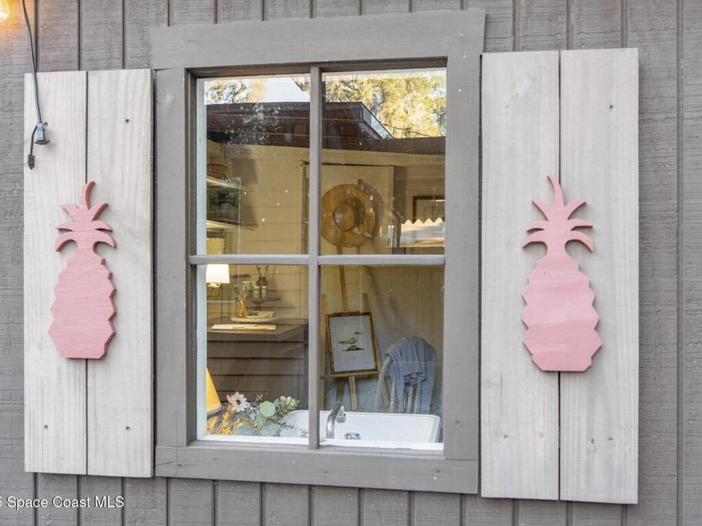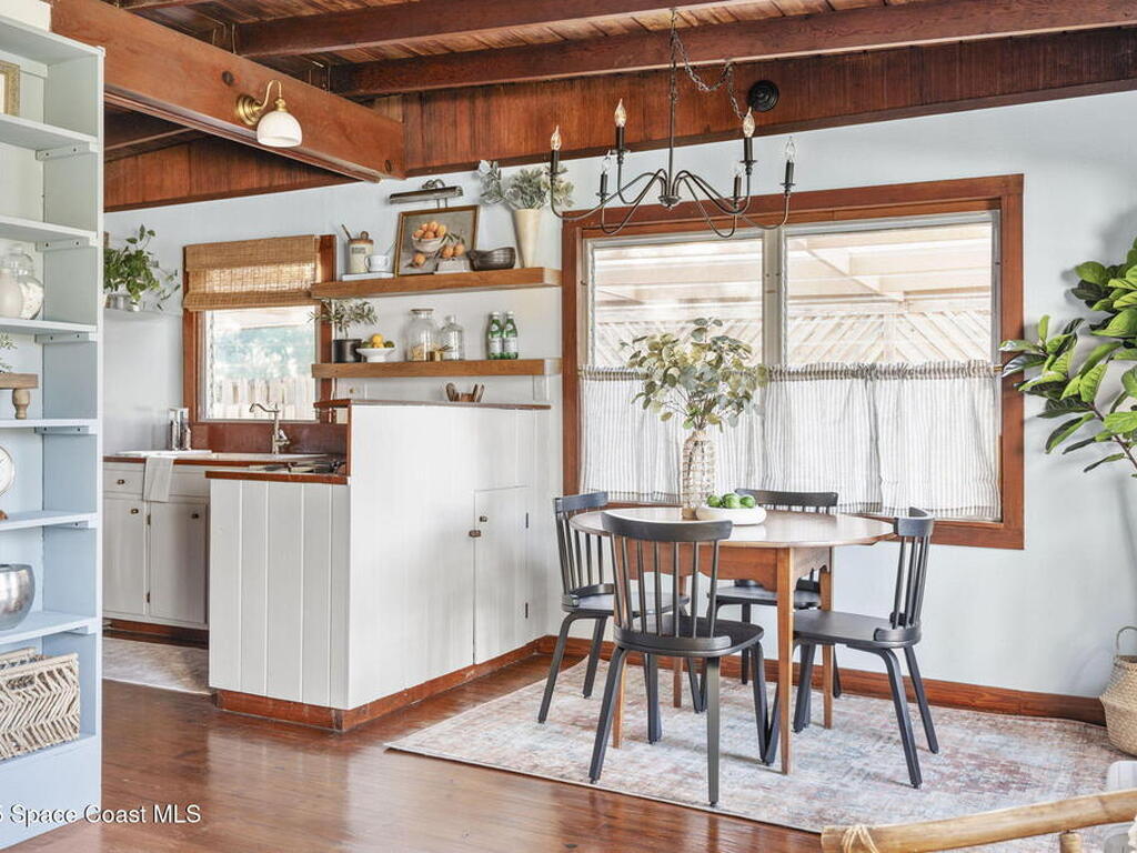 Rare opportunity to purchase a charming cottage with a pool in the most desirable location in the Eau Gallie Arts District. Step into a storybook retreat where historic character meets Florida vacation. You'll find many leather-bound books and it smells of rich cedar. This thoughtfully updated cottage captures the timeless feel of a bed and breakfast--making it an ideal opportunity for investors seeking a charming Airbnb or short-term rental in the thriving EGAD. Every detail tells a story with pristine original hardwood floors, cedar ceilings, doors and thoughtfully curated design details. Inside, you'll find two cozy living spaces, two inviting bedrooms including a primary suite with lounge and full bathroom. The family room opens to a pool bath, exceptional indoor laundry, and a private backyard oasis. Surrounded by lush Florida landscaping--towering oaks, swaying palms, and vibrant ferns--this outdoor space invites slow mornings and starlit evenings with its pool, dining area
