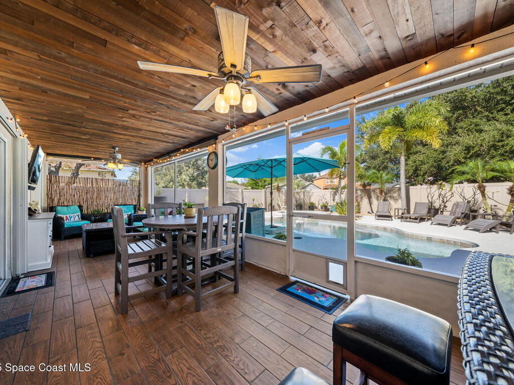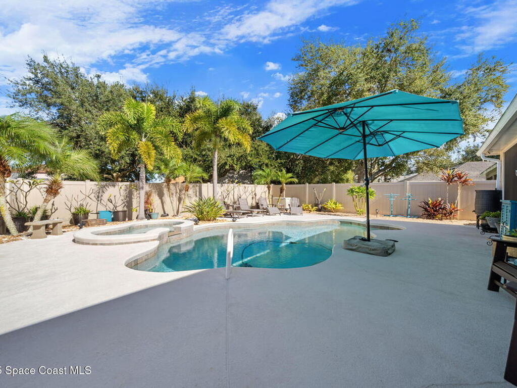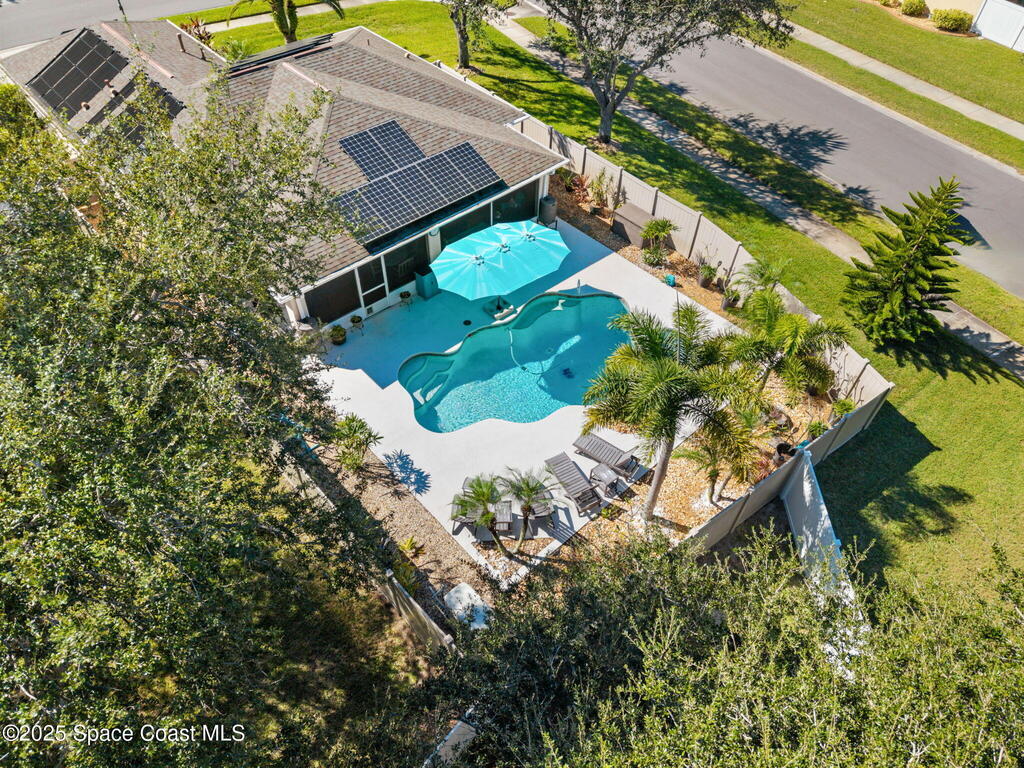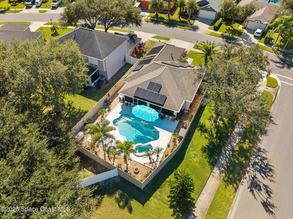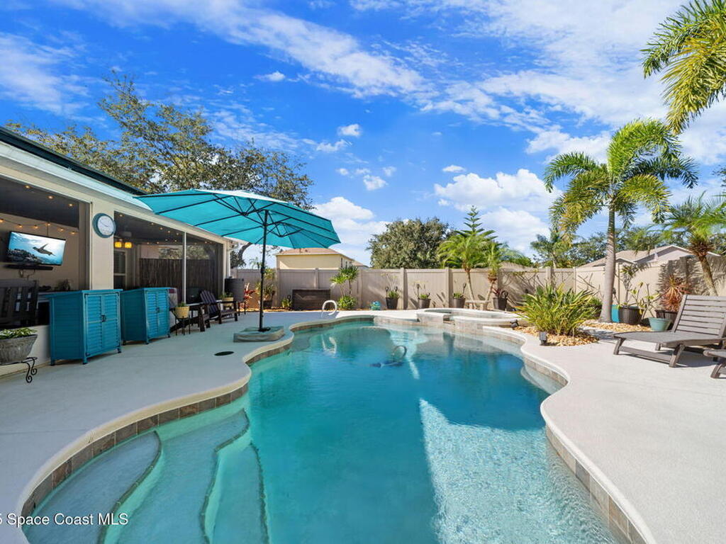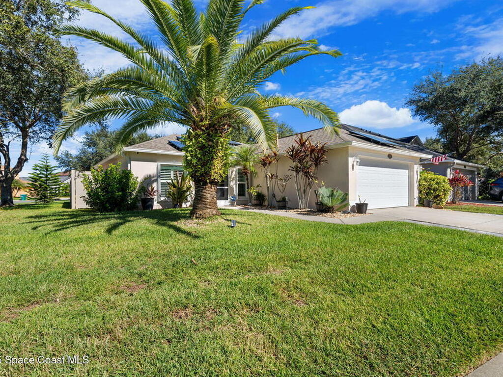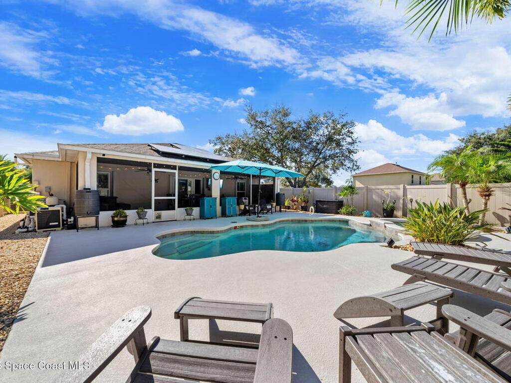 Welcome to 4156 Four Lakes Drive in the prestigious Grand Haven community! This beautifully maintained 3-bedroom, 2-bath home offers an open, light-filled floor plan designed for comfort and entertaining. The spacious great room flows into an updated kitchen with granite countertops, stainless steel appliances, and custom cabinetry. The primary suite features a walk-in closet and spa-inspired bathroom. Step outside to a screened lanai overlooking a serene backyard. This home features fully paid off Solar Panels, a Generac system, and a gorgeous pool highlighting an amazing backyard. Grand Haven residents enjoy a clubhouse, fitness center, tennis courts, and walking trails, all conveniently near shopping, dining, top-rated schools, and the beach. Experience refined Florida living in one of Melbourne's most desirable neighborhoods!