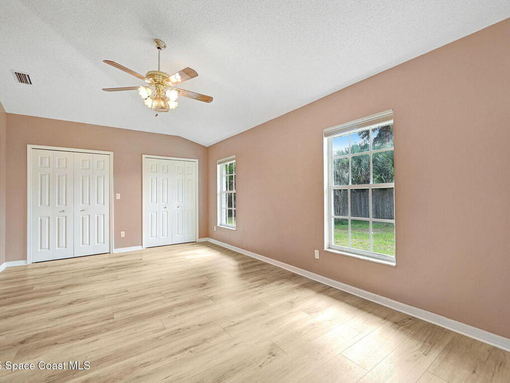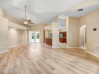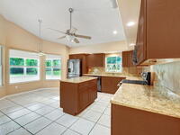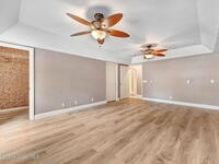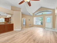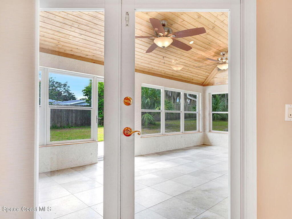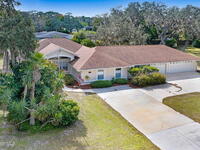 Immaculate 4BD/3.5BA 3 Car Garage + Gulf Cart parking on .96 acres. This home offers 2, 382 SF of light-filled rooms, updated living area . A stunning custom kitchen remodel showcases granite counters, stainless appliances, 2 pantries w/ two islands. Spacious open layout includes wood-look laminate & ceramic tile, vaulted ceilings so many details. French doors to your enclosed sunroom from the living room, perfect for seamless indoor-outdoor living. Two primary suites features, a walk-in closet, & a gorgeous primary suite bath jetted tub, dual vanities & glass shower. Two guest rooms, updated full bath, and generous laundry room w/ lots of storage, adds comfort & flexibility. Over size 3-cargarage 952 SF w/huge Driveway & a private backyard oasis to make your own add a pool. NO HOA so bring the toys plenty of room to roam. Fully Move-In Ready turn key. Close to OIA, Space Force, & beaches .