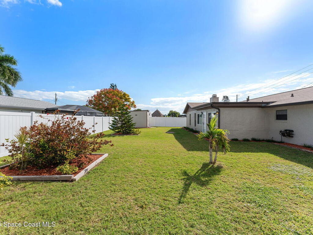 Beautifully maintained 3 bed, 2 bath move-in ready home on sought after Newfound Harbor Dr! This property impresses from the start w/ fresh landscaping, tropical palms, & great curb appeal! Thoughtfully updated w/ new roof (2019), new A/C (2023), full PEX repipe for water lines, new vinyl fenced backyard (2024), newer dishwasher & disposal, and updated front & rear doors. Inside, the spacious primary suite offers a cozy double sided gas fireplace shared w/ the family room featuring a lovely stone facade, perfect for relaxing or entertaining. Kitchen features newer cabinets, stainless appliances & decorative tile backsplash. Enjoy a large, fully fenced backyard offering plenty of privacy, room for a pool & a shed with a newer roof. Additional highlights include a 2 car garage w/ newer opener, washer & dryer included, and no HOA! Ideally located just minutes from Port Canaveral, Kennedy Space Center & Cocoa Beach. A wonderful blend of comfort, style & convenience.