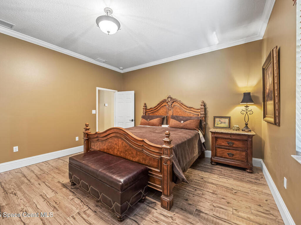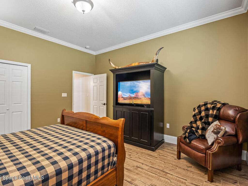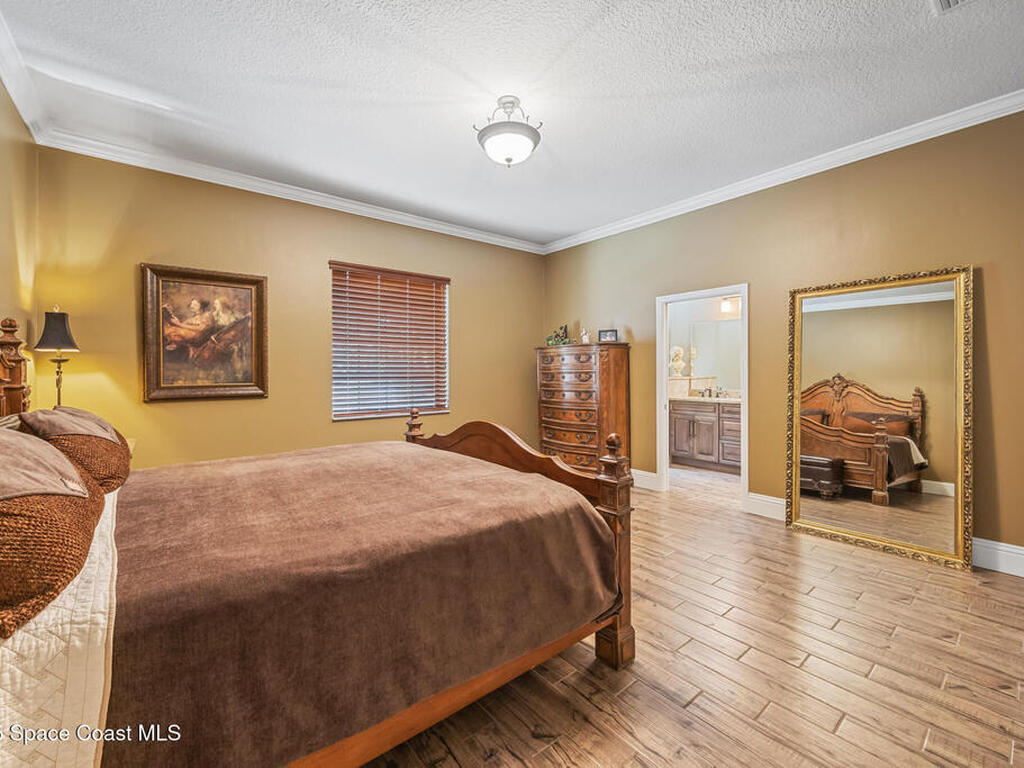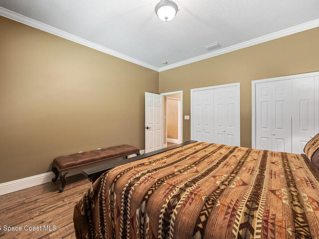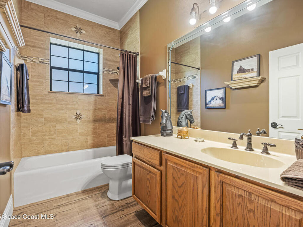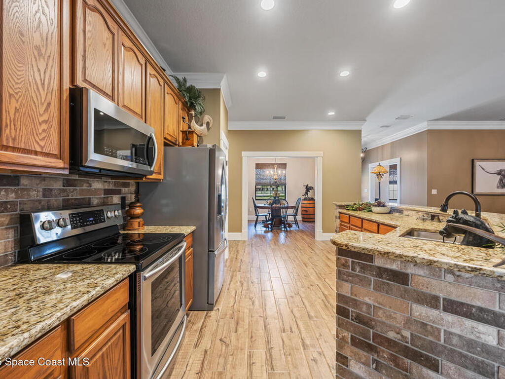Welcome to this beautifully maintained brick-on-block home, with a sprawling 2.38 acres. This spacious home features 3 oversized bedrooms, 2 bathrooms with desirable split floor plan, separate dining room, and a dedicated office. The spacious layout is perfect for both relaxation and entertaining. Step outside to discover an impressive back porch with pavers. Nestled in the backyard of this picturesque property, you will find a tow-story workshop that exudes character and warmth, crafted from board and batten rough-sawn pine. The exterior boasts a timeless appeal, that harmonizes beautifully with the surrounding nature. You can embrace the charm and functionality of this rustic gem. The large yard offers plenty of room to relax, garden, or expand as your surrounded by the beauty of mature oak trees and vibrant crepe myrtles. Located with easy access to Kennedy space center and all major highways. This home is for anyone looking for space, function, and a bit of country charm.