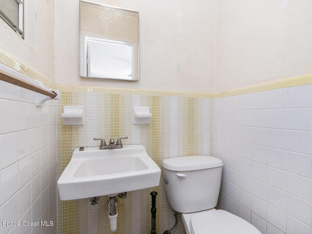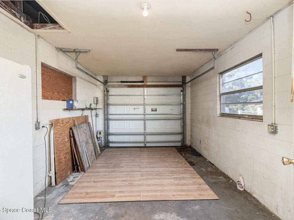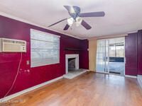 Outstanding location in South Merritt Island! 1/2 mile walk to Rotary Park. All A rated schools. Tropical landscaped front yard with large Koi pond welcomes you to this concrete block home. Incredible potential to remodel to your own taste. Cast-iron pipes have been replaced in 2022. Kitchen has already been partially removed and is a blank template ready for a fresh new look! Peaceful neighborhood of well-maintained homes and no through traffic. Open floor plan enters into living and dining room, passing through the kitchen into the family room with fireplace and sliders to the screen enclosed back porch. Was used as 3 bedroom 1.5 bath. Should be easy to modify into a 2 bathroom home. One car garage, double driveway with basketball hoop. Large backyard fenced and separated to allow one side for the kids and the other side for storage. Easy to open up completely. AC 2014. Impact garage door 2015. City Water and City Sewer!