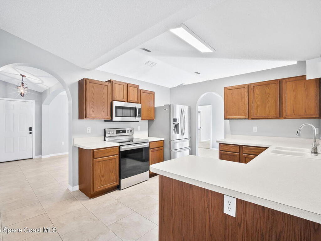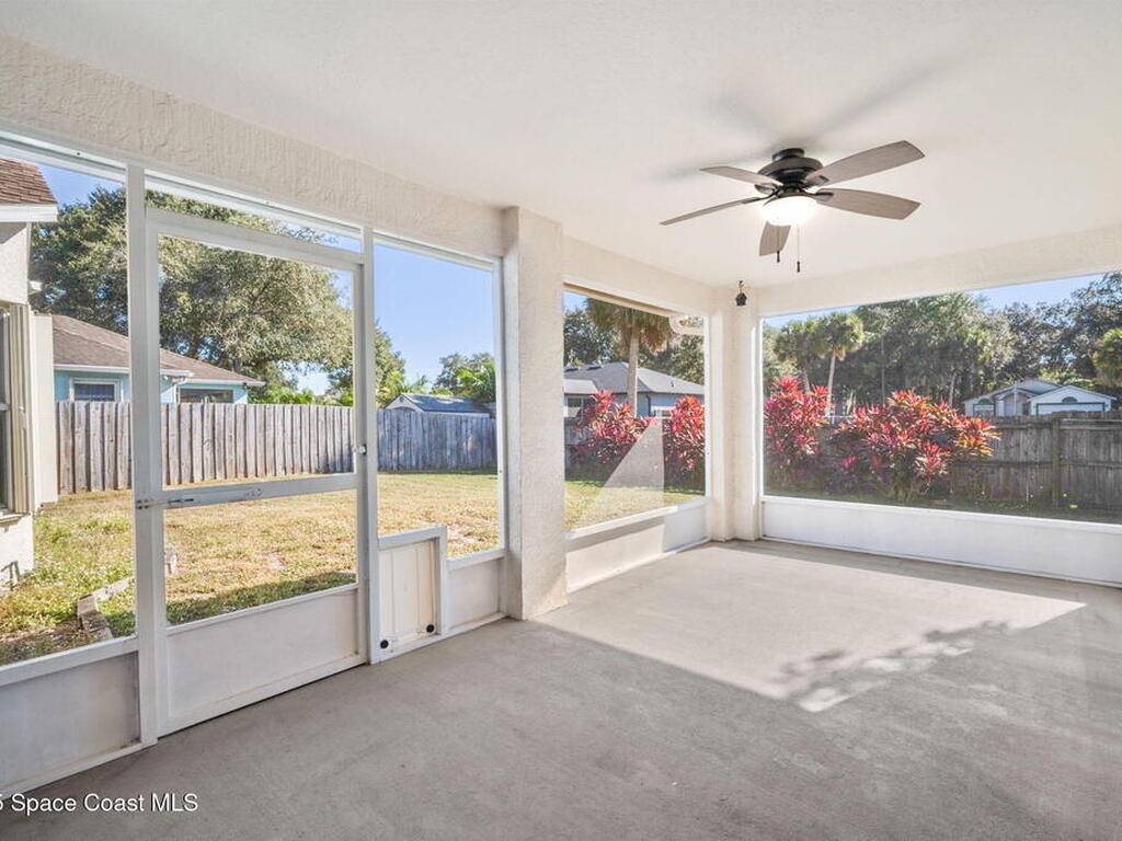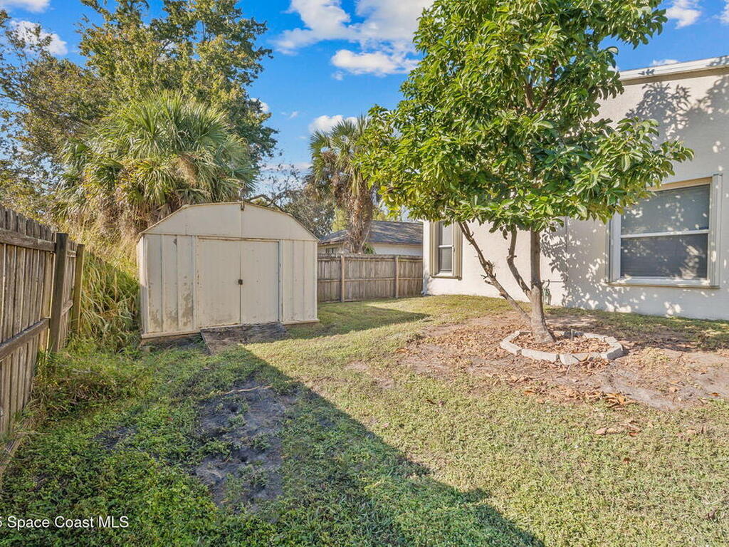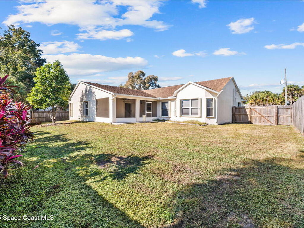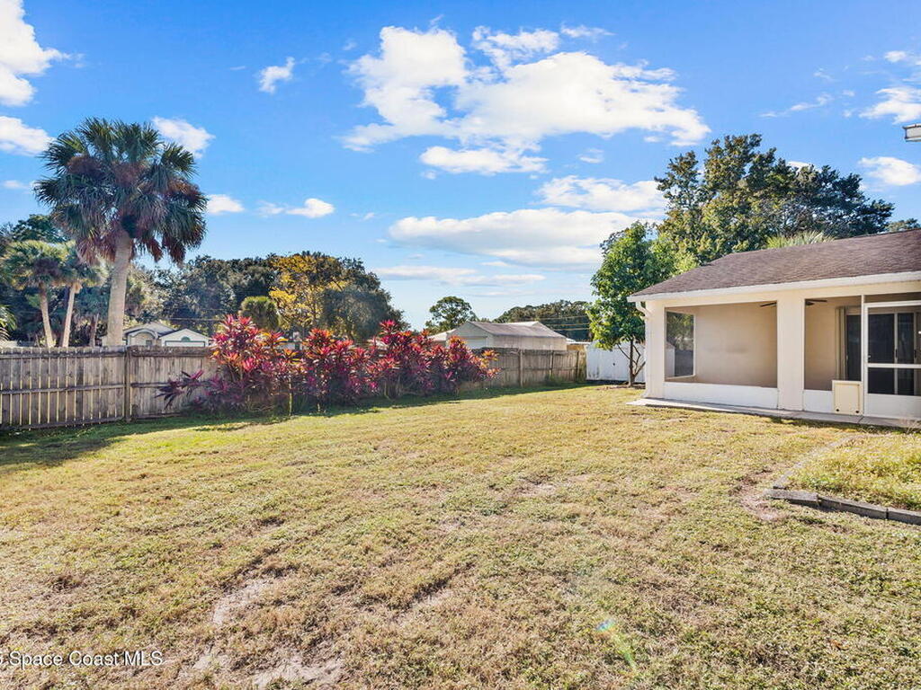 Space Coast beauty ready to move right in! This spacious 3BR/2BA CBS home features a popular split-bedroom plan with formal living & dining rooms, a cozy family room, and a bright kitchen with breakfast nook and all appliances. The primary suite offers a cathedral ceiling, remote fan, walk-in closet, and relaxing bath with garden tub, separate shower & double sinks. Enjoy Florida living on the large screened porch overlooking your own avocado tree! The privacy-fenced backyard includes a workshop for hobbies or storage and a double gate for RV or boat parking. Fantastic location near I-95 & 528 Beachline--just minutes to beaches, shopping, and Orlando attractions. Comfort, convenience & coastal charm all in one!