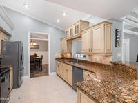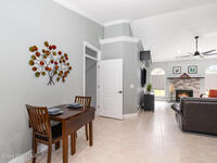Stunning 4-bed, 2-bath CBS home located in the highly sought-after community of Carriage Gate. Perfectly situated on a picturesque half-acre lakefront lot, this home offers stunning sunset views & a private screened-in pool, ideal for relaxing or entertaining. Inside, you'll find an expansive open split floor plan with volume ceilings, natural light, and elegant crown molding. The kitchen is equipped with granite countertops, stainless steel appliances, and a spacious layout that flows seamlessly into the living and dining areas. Double French doors lead to the covered patio and pool area, creating the perfect indoor-outdoor lifestyle. With no carpet throughout, the home offers both style and easy maintenance. Recent major updates include a new roof (2024), A/C & Duct work (2023), PEX re-pipe (2024), new septic pump (2024), new pool tile (2025) & irrigation pump (2021). The extra-long driveway and 2-car garage provide ample parking. Move-in ready! Schedule your private showing today.