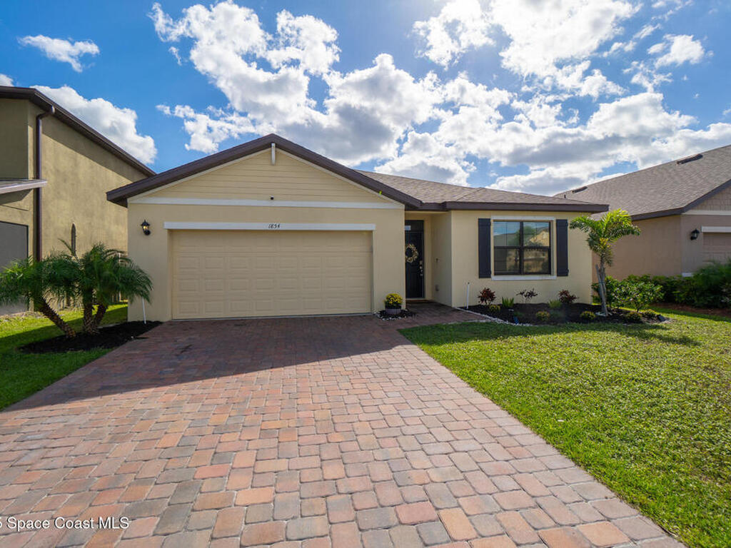 Stunning Turnkey 4-Bedroom, 2-Bathroom Lakefront Home in the Gated Community of Cypress Bay PreserveWhy wait, or worry about updates when you can move right into this LIKE-NEW 4-bedroom, 2-bathroom lakefront home located in the desirable gated community of Cypress Bay Preserve? This home includes appliances, window treatments, and additional upgrades, making it truly move-in ready. Located within the up-and-coming master-planned community of Emerald Lakes, the growth potential is endless. HOA fees are very low, and there is no CDD to worry about.Built in 2022, this nearly 2, 000 sq. ft. home exemplifies modern living with timeless appeal. The paver driveway, truss-covered entry porch, and overall curb appeal create a warm and elegant first impression. Inside, the thoughtfully designed open floor plan offers abundant natural light, upgraded lighting fixtures, an accent wall, and custom wood trim that enhance the home's beauty.The large, modern kitchen serves as the
