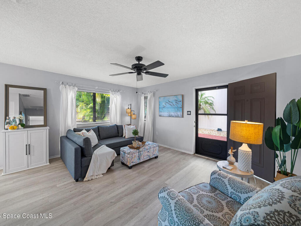 One of a kind Cocoa Beach condo! This beautifully updated one bedroom, one bath condo features all new stainless steel appliances, new flooring and a brand new roof-completely move in ready! Enjoy your morning coffee on the private patio overlooking the Cocoa Beach country club golf course where you can take in stunning sunsets each evening Located in the heart of Cocoa Beach. You're just over a mile from the beach with and within walking distance to restaurant shops in the downtown area with the aquatic center, tennis courts and golf course just around the corner, offers a perfect mix of coastal living and active lifestyle. The association members have a first refusal (10) days.