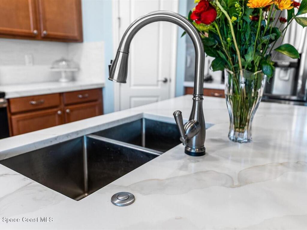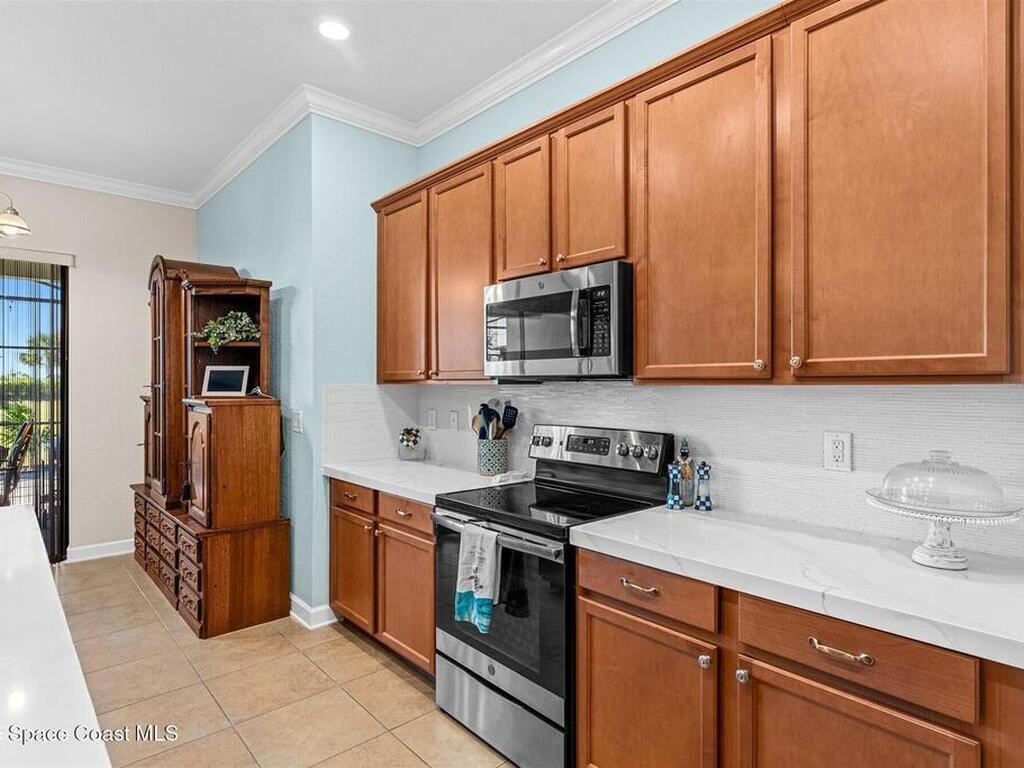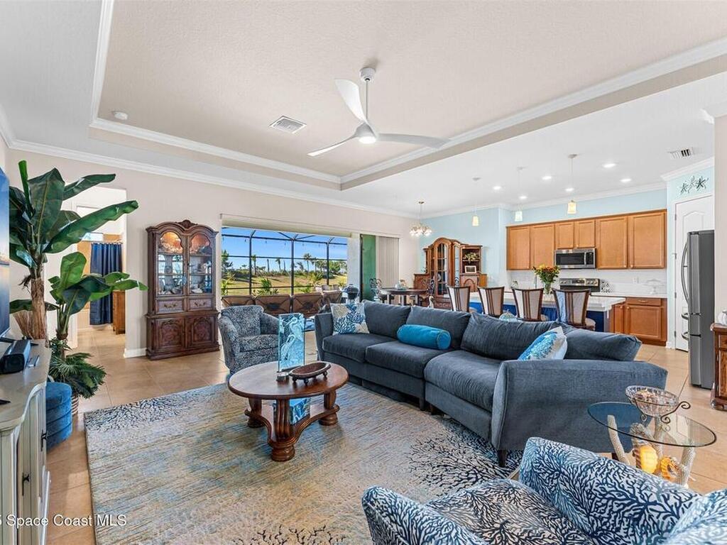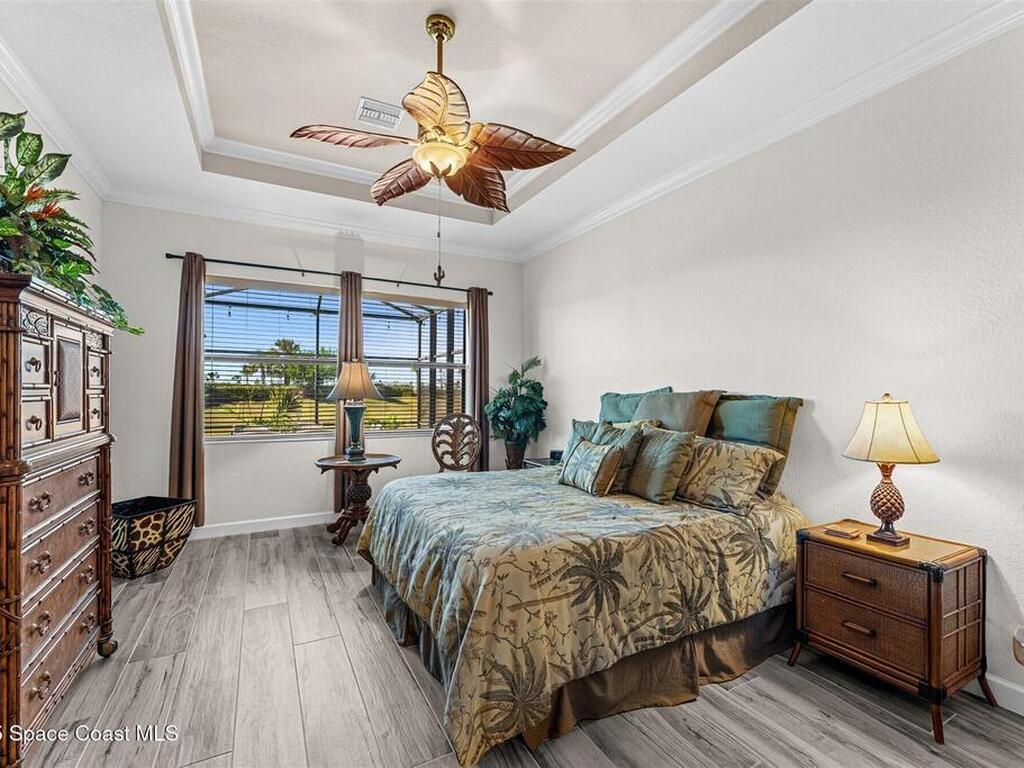 Situated on a .47-acre lot in Bridgewater, Viera's prime 55+ community, this rare sought-after Boretto plan has 3 bedrooms plus a study w/ glass doors and closet, 3 baths, garages for 3 cars and includes a front courtyard flanked by a two-car garage and a separate one car garage! Imagine having two sealed paver driveways! Must have features include tile throughout, 8' doors, tray ceilings, crown moldings, and four sliders that lead to an expanded screened lanai! The gourmet kitchen delights with stunning newer designer quartz kitchen counters, enlarged island w/disposal button and touch faucet, upgraded refrigerator and d/w, and custom shelves in pantry. Enter primary bedroom through double doors into a true retreat with luxury bath w/tub and separate tile shower, tray ceiling, walk-in closet with dual entries and built-ins! Active 55+ gated community offers a resort style clubhouse with heated pool/spa, fitness center, movie theater, tennis & pickleball courts and HOA does lawncare