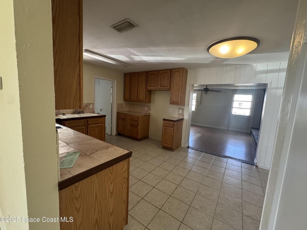 Situated on a spacious corner lot at Milton and Hood, this 3-bedroom, 2-bath home offers a wonderful opportunity to make it your own. The living and dining areas provide plenty of natural light, creating a welcoming atmosphere with great potential for a modern refresh. The corner location adds extra yard space and privacy, complemented by mature trees and classic Florida charm. While updates are needed, this property is ideal for those seeking a project with solid bones in a well-established Titusville neighborhood. Conveniently located near shopping, dining, schools, and just a short drive to the Indian River and Kennedy Space Center.