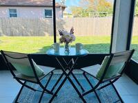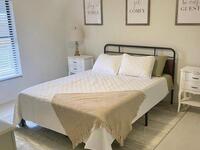 Cozy house on a full 1/4 acre lot. 2 Bed 1 Bath w/ covered screened in porch. Home has nice upgrades and conveniently located in a desirable area with natural mature trees around. Not far from shopping, restrauants, and the beach. Concrete block construction, paver driveway, exterior stone accents, tile floors throughout, newer kitchen cabinets, quartz countertop newer stainless steel appliances, newer remodeled bathroom, roof 2018, no HOA with a huge large fenced in yard for your pets, park boat, trailer, rv etc. Well/ Septic. Septic last pumped 2023. Hot water heater is new. Furnishing are optional if buyer is interested.