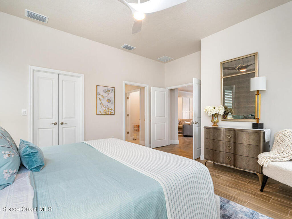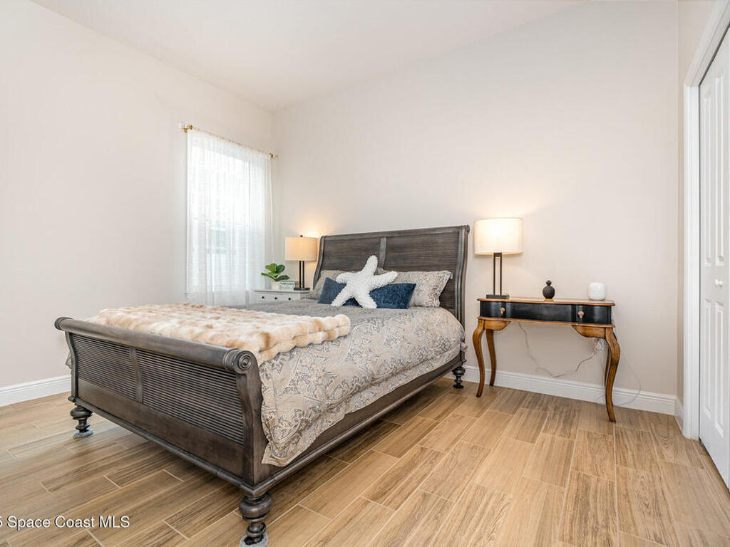 Experience the best of modern multi-generational living in this single-story 2024-built 4-bedroom, 3-bath home in sought-after Reeling Park, West Viera. Designed for today's lifestyle, the open-concept In-Law Floor Plan features elegant tile flooring throughout, a spacious kitchen with quartz countertops, extra pantry cabinetry, and an expansive island perfect for entertaining. Enjoy stylish touches including plantation shutters and luxury finishes. The primary suite and guest accommodations provide flexibility for extended family or guests. Outdoor living shines with front and rear screened porches, an expansive paver patio, and a fenced yard professionally landscaped for privacy, all in a peaceful park setting. Ideally located near top-rated schools, fine dining, shopping, and the resort-style Addison Village Club. You're less than 20 minutes to the beach and minutes from championship golf courses. Sellers offering up to $5, 000 in closing cost credits with accepted offer.