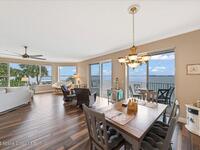 Spacious & Luxurious Riverfront Condo. Fully Furnished North East Corner Residence offers Stunning, Panoramic views of the Indian River from its expansive wrap-around balcony.The property provides 2, 321 sq. ft. of Grand living space & boasts a tranquil & elegant atmosphere. Featuring 3 bedrooms, 3 bath, & a versatile den/4th bedroom. It includes designer touches and 9ft. ceilings throughout.The gourmet kitchen is equipped w/an island, breakfast bar, and Quartzite countertops w/a leather finish. It features SS appliances & an abundance of quality cabinetry. Wood plank tile flooring runs throughout the main living areas.The master suite is a true retreat, featuring sliders that open to a private balcony, plantation shutters, & two walk-in closets. The spacious master bath includes a Jacuzzi tub, separate shower, & dual vanities.Enjoy Spectacular Sunrises & watch playful dolphins from the comfort of your home, kitchen, living dining areas, & master suite all offer gorgeous river views.