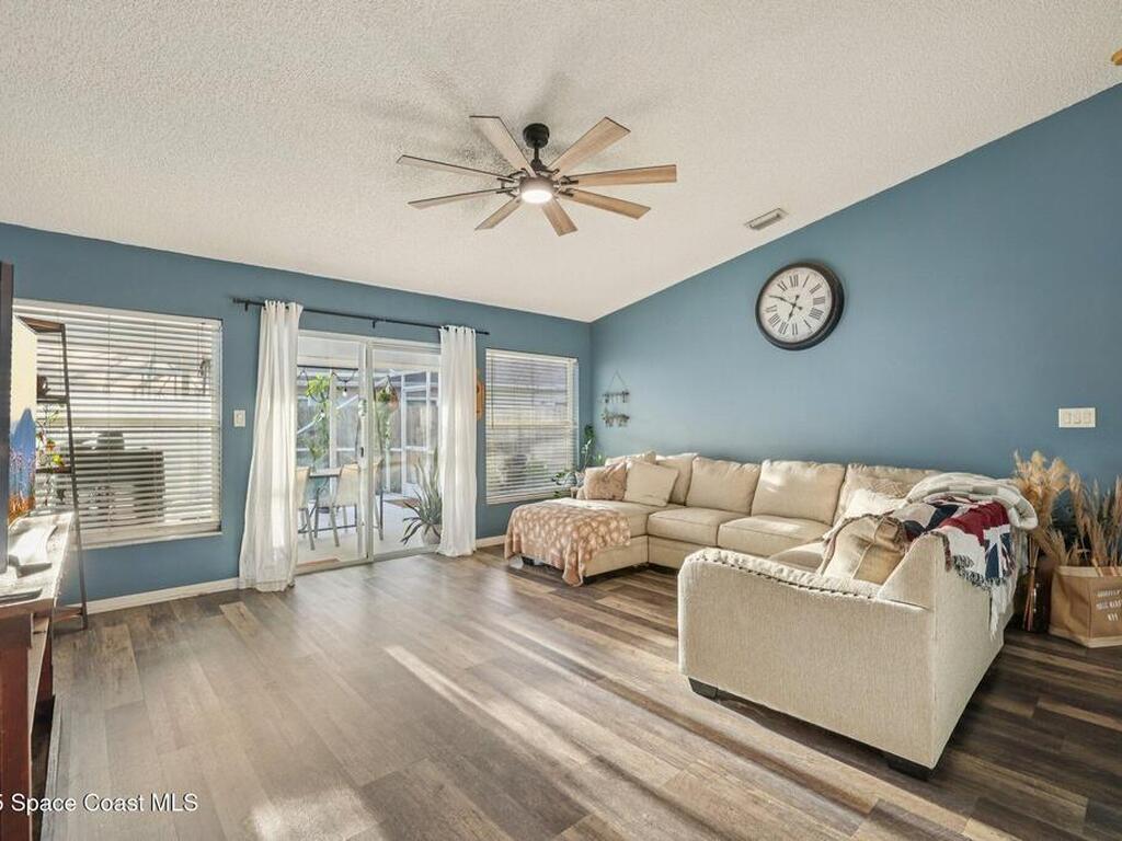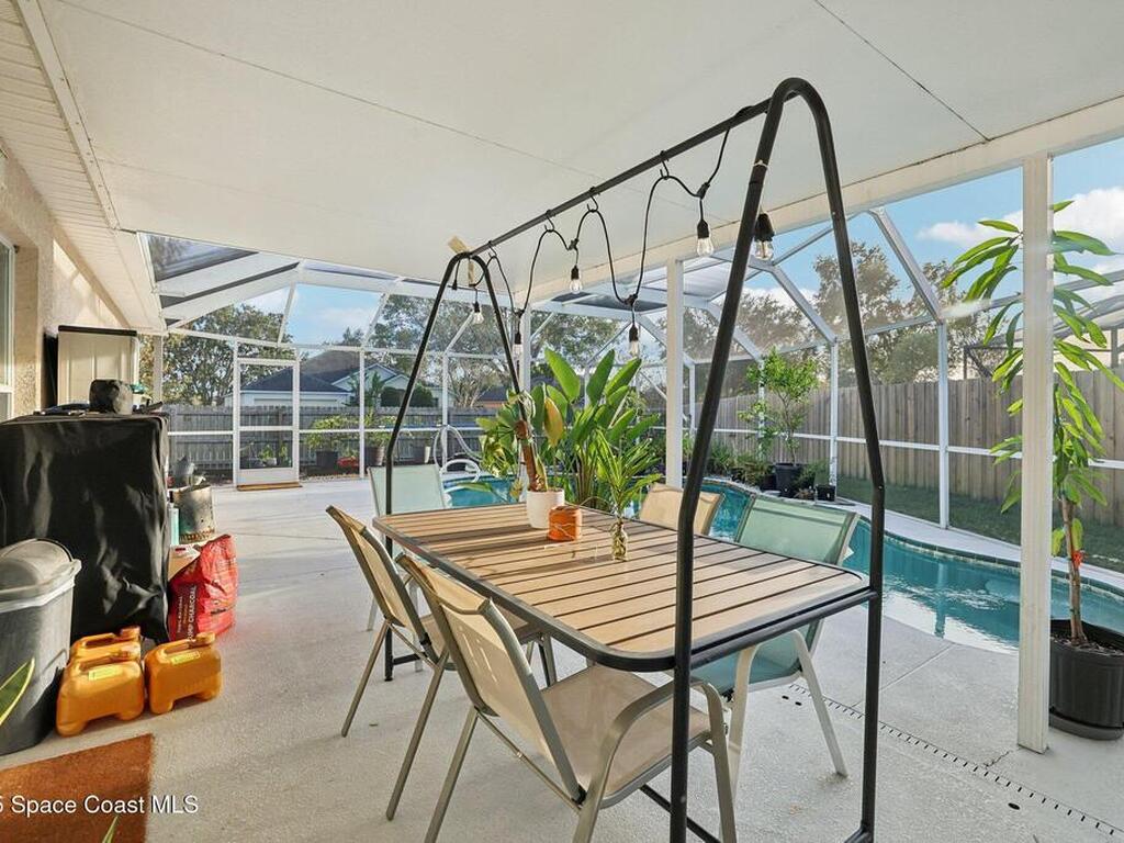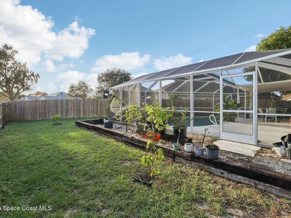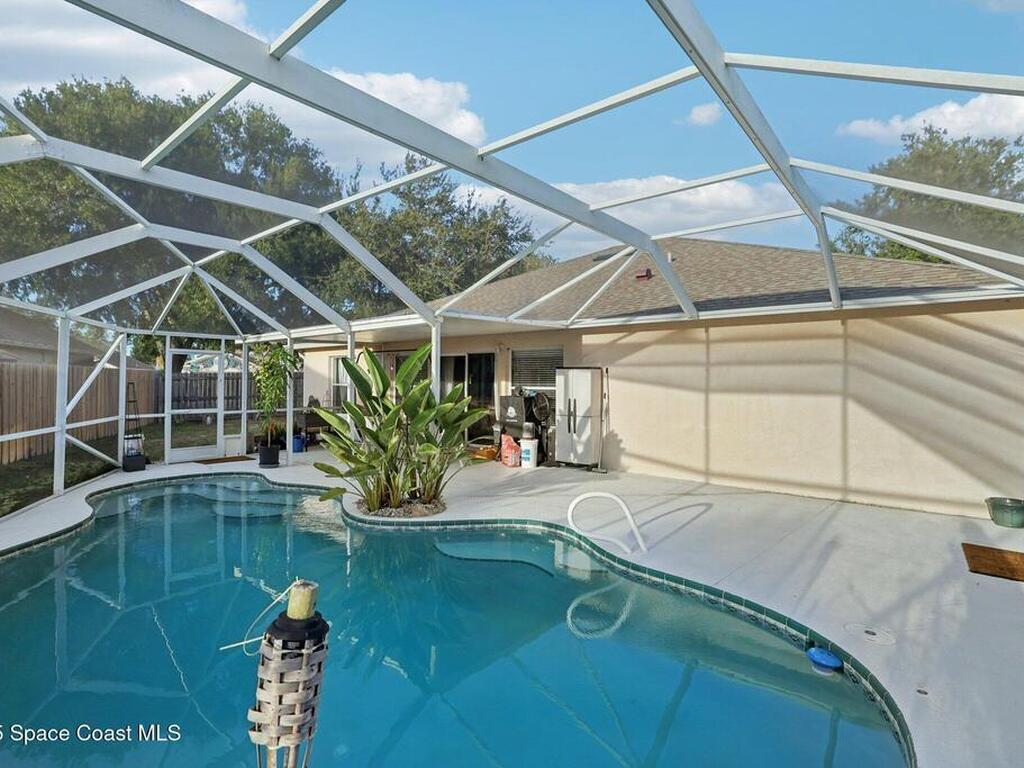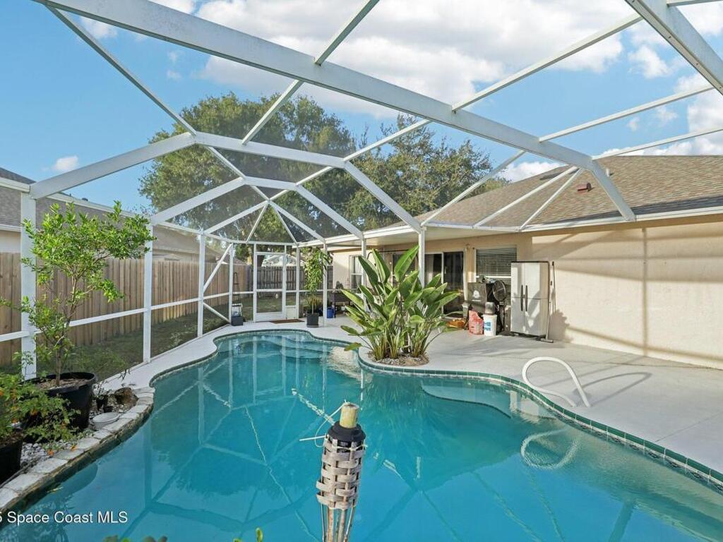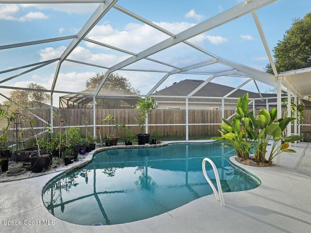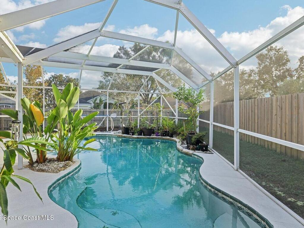 Beautiful 3-bedroom, 2-bath pool home on a spacious corner lot! Enjoy your private screened pool and lanai with all new screening and hardware (2025), plus a fully fenced backyard and covered porch offering plenty of space to relax and entertain. Inside, you'll love the new LVP flooring throughout, vaulted ceilings, and natural light in every room, creating a bright and open atmosphere. The extra-large kitchen features newer stainless steel appliances, a pantry, and abundant counter space! This home offers multiple living areas including a formal living room or office/bonus room, formal dining room, and a family room overlooking the pool. The extra large primary suite includes a walk-in closet and peaceful backyard views. Roof 2022, HVAC 2013. Located within walking distance to the elementary school and just minutes to Cape Canaveral, Kennedy Space Center, Publix, shopping, and I-95--perfect Florida living! Relax, entertain, and make this your own private retreat!