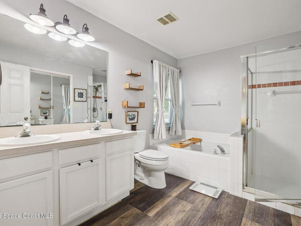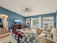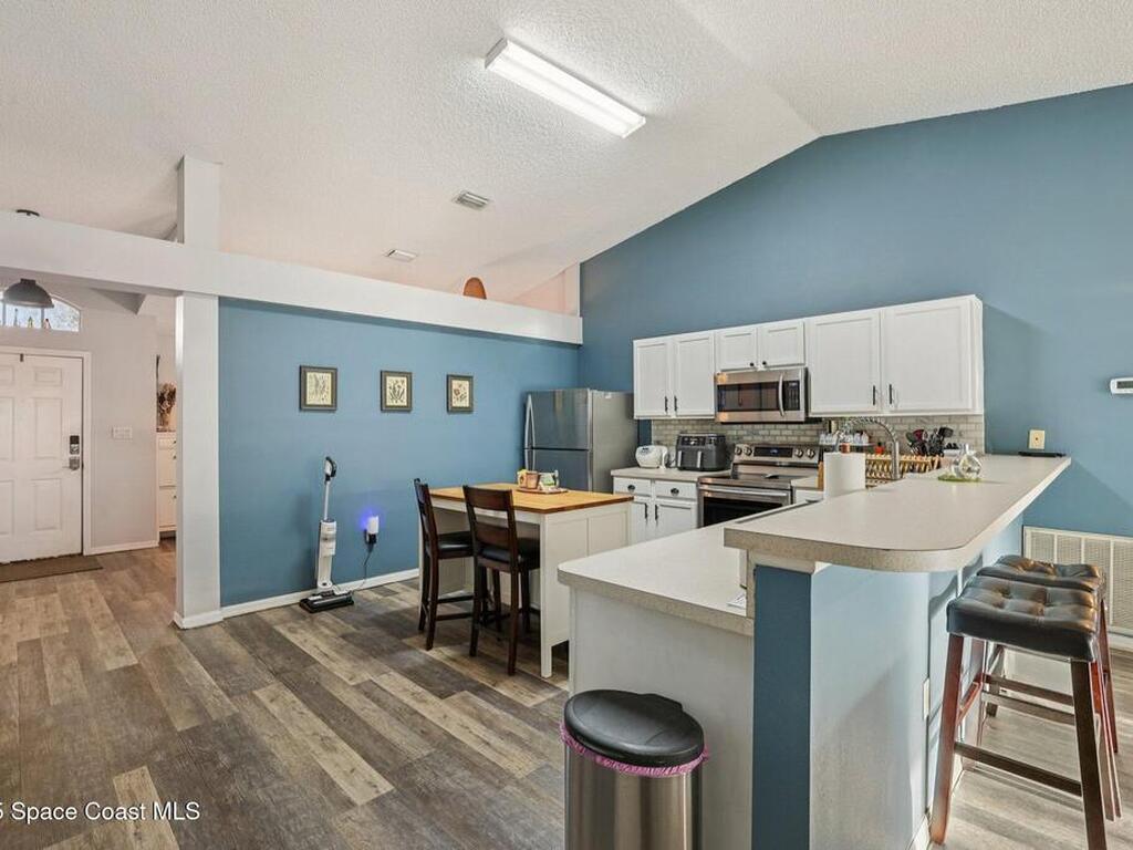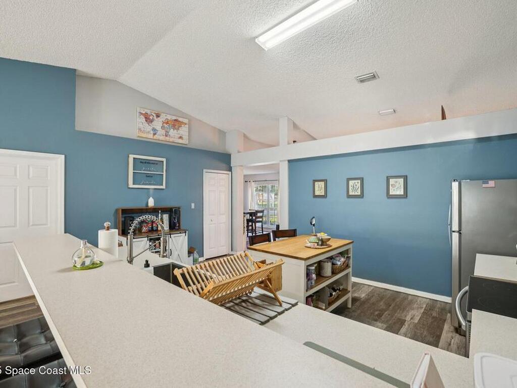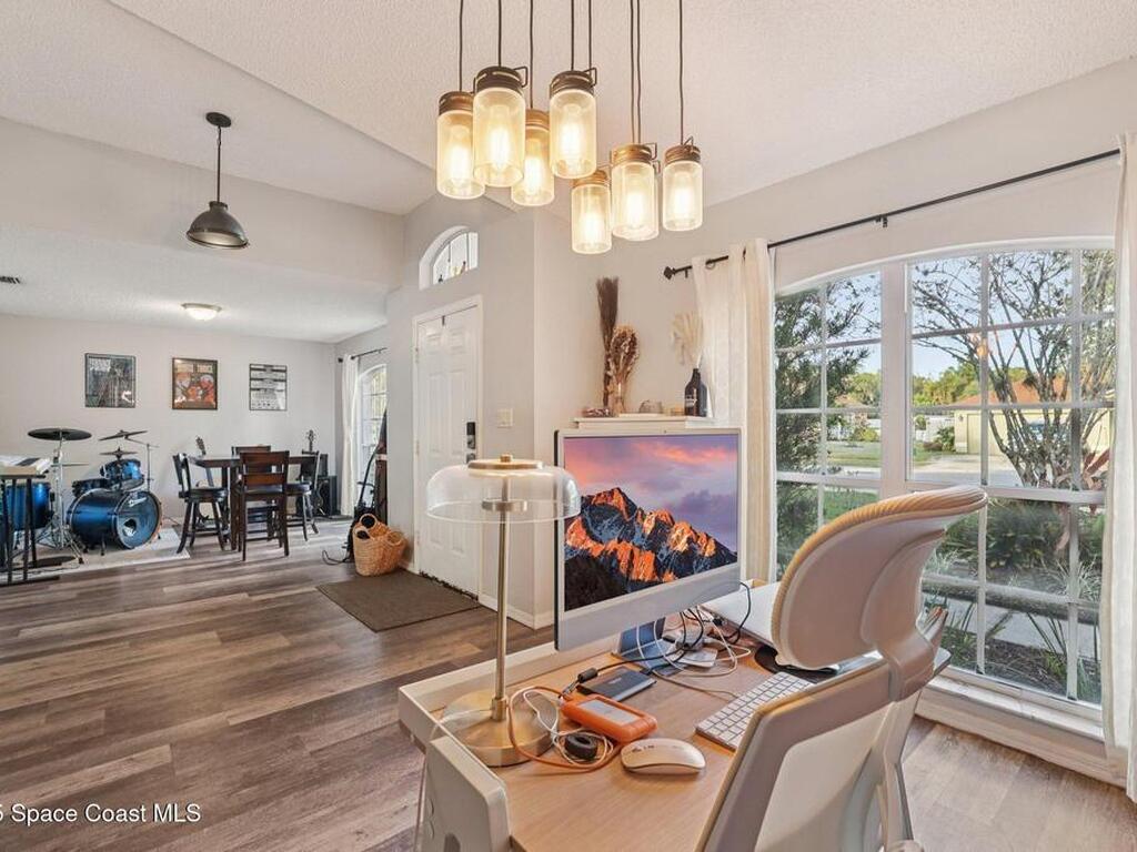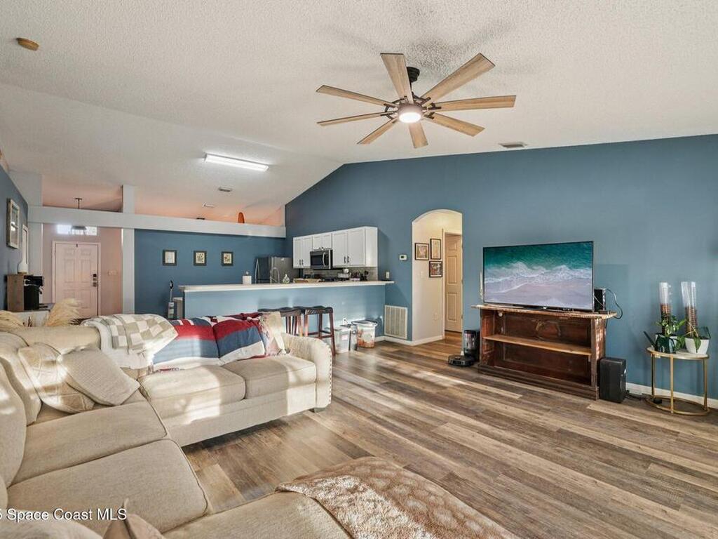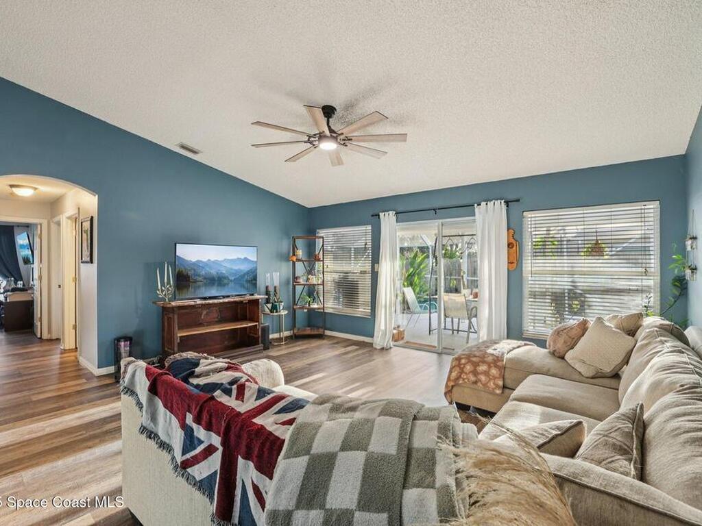 Beautiful 3-bedroom, 2-bath pool home on a spacious corner lot! Enjoy your private screened pool and lanai with all new screening and hardware (2025), plus a fully fenced backyard and covered porch offering plenty of space to relax and entertain. Inside, you'll love the new LVP flooring throughout, vaulted ceilings, and natural light in every room, creating a bright and open atmosphere. The extra-large kitchen features newer stainless steel appliances, a pantry, and abundant counter space! This home offers multiple living areas including a formal living room or office/bonus room, formal dining room, and a family room overlooking the pool. The extra large primary suite includes a walk-in closet and peaceful backyard views. Roof 2022, HVAC 2013. Located within walking distance to the elementary school and just minutes to Cape Canaveral, Kennedy Space Center, Publix, shopping, and I-95--perfect Florida living! Relax, entertain, and make this your own private retreat!