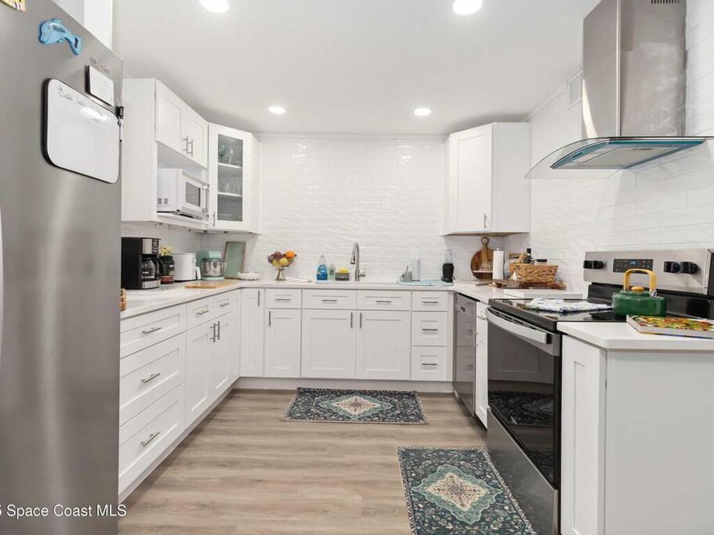 This 2 Bedroom/2 Bath 2nd floor condo is completely renovated. Located just steps from the Beach. Enjoy the modern kitchen with new cabinets, new quartz countertops and new appliances.The upgraded includes new luxury vinyl flooring throughout, both bathrooms full renovated, new vanity, new toilet, new fixtures and the new shower with glass doors. Laundry room with new washer and dryer.HOA fees cover water, sewer, cable, internet, grounds maintenance, roof, community pool, clubhouse, shuffle board, tennis courts and insurance for the exterior of the property.The complex does not allow motorcycles or pickup trucks.