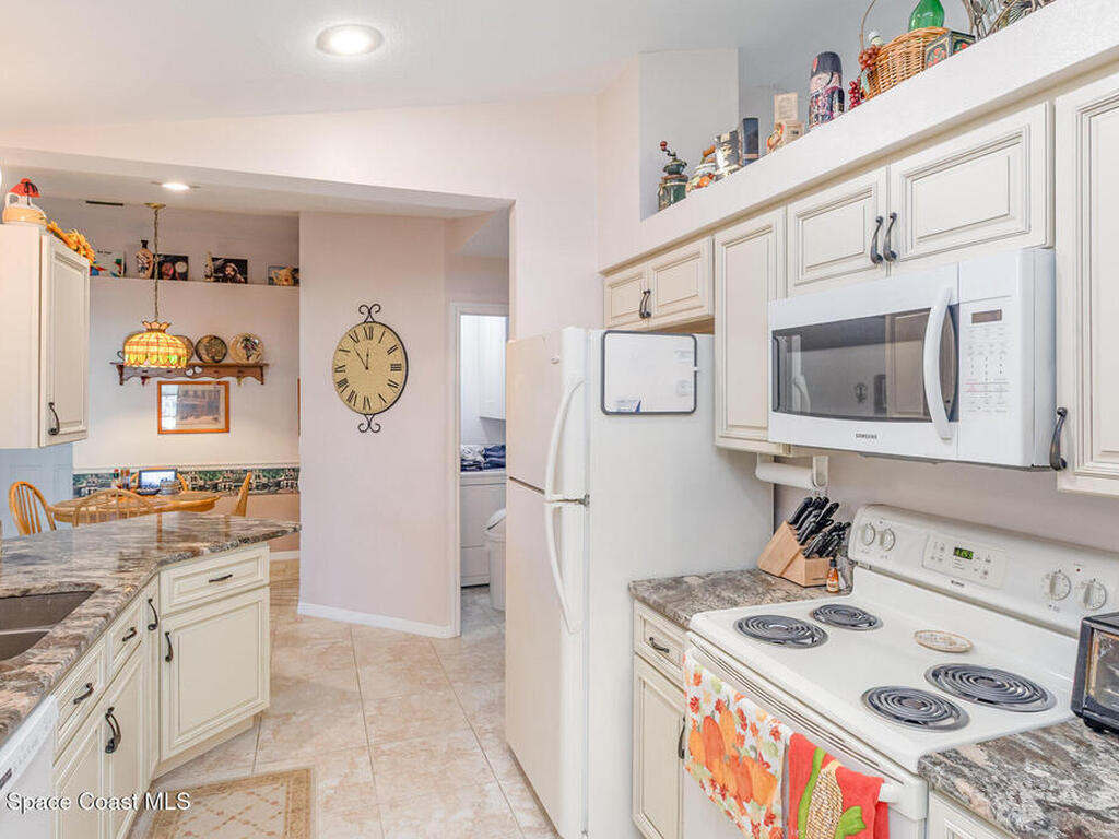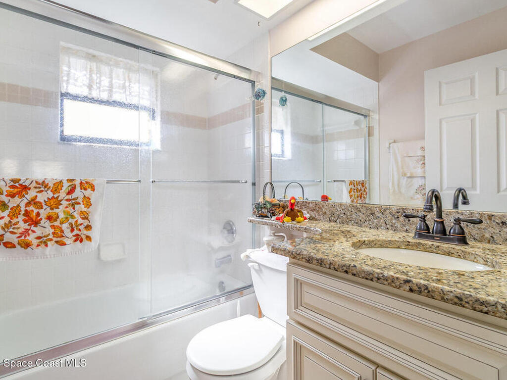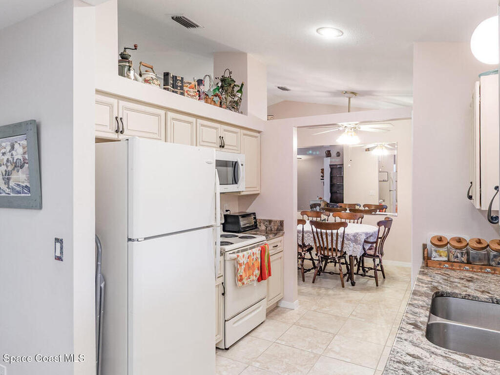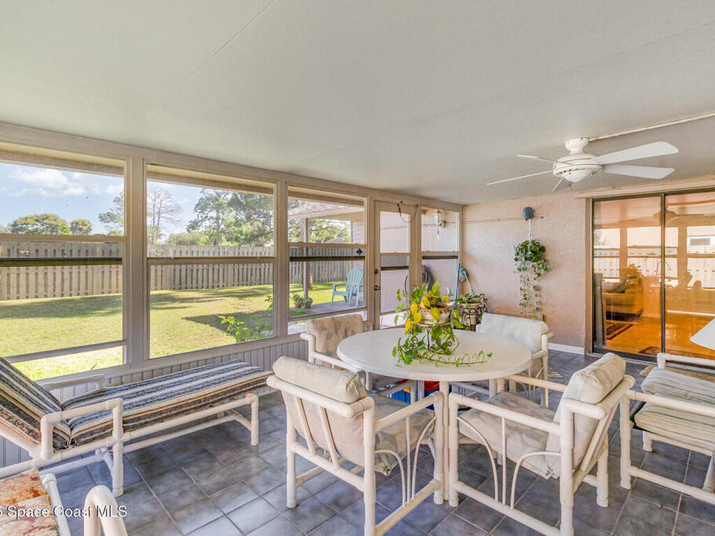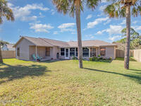 This beautifully maintained 3-bedroom, 2-bath home with a 2-car garage is located in a desirable community just minutes from beaches, shopping, I-95, FIT, and Harris. Enjoy vaulted ceilings, a bright formal living and dining area, and a comfortable family room. The upgraded kitchen features soft-close cabinets, beautiful granite, a pantry, and a picture window overlooking the patio -- great for entertaining. The split floor plan offers a private primary suite with a master bath featuring a dual vanity and linen closet. The screened, tiled patio opens to a landscaped, fenced backyard with a powered workshop. Additional features include, a newer roof (2017), water heater (2022), irrigation system, hurricane shutters, wired for a security system, and a Ring doorbell. A wonderful home in a convenient, central location -- come see this one today!