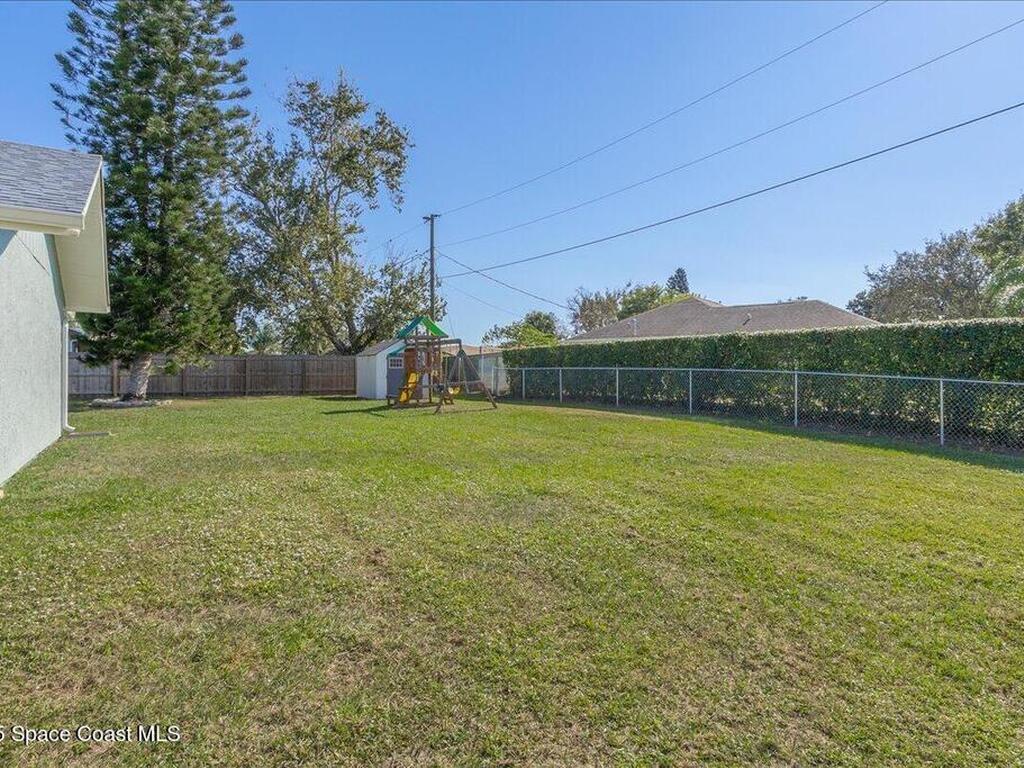 Welcome home to this lovingly updated 3-bed, 2-bath family retreat nestled on a spacious 0.29-acre corner lot in a quiet Palm Bay neighborhood. From the moment you arrive, you'll appreciate the pride of ownership and thoughtful upgrades throughout. Enjoy peace of mind with new hurricane-impact windows and sliding glass doors, a new roof (2023), and a new A/C system for year-round comfort. The bright, open floor plan makes it easy to gather with loved ones -- from cooking in the modern kitchen with all-new stainless appliances to movie nights in the cozy living area equipped with in-wall 7.1 surround sound. Step outside to your large, fenced backyard--perfect for kids, pets, or weekend BBQs. Equipped with 16 channel camera system, hardwired CAT6+ Data lines. Every window, door and room has motion and glass break detection, your security is covered. Just minutes to schools, shopping, and I-95, this one truly checks all the boxes! Come make this beautiful property your next home!