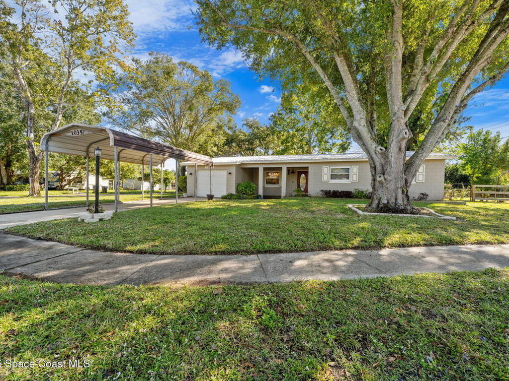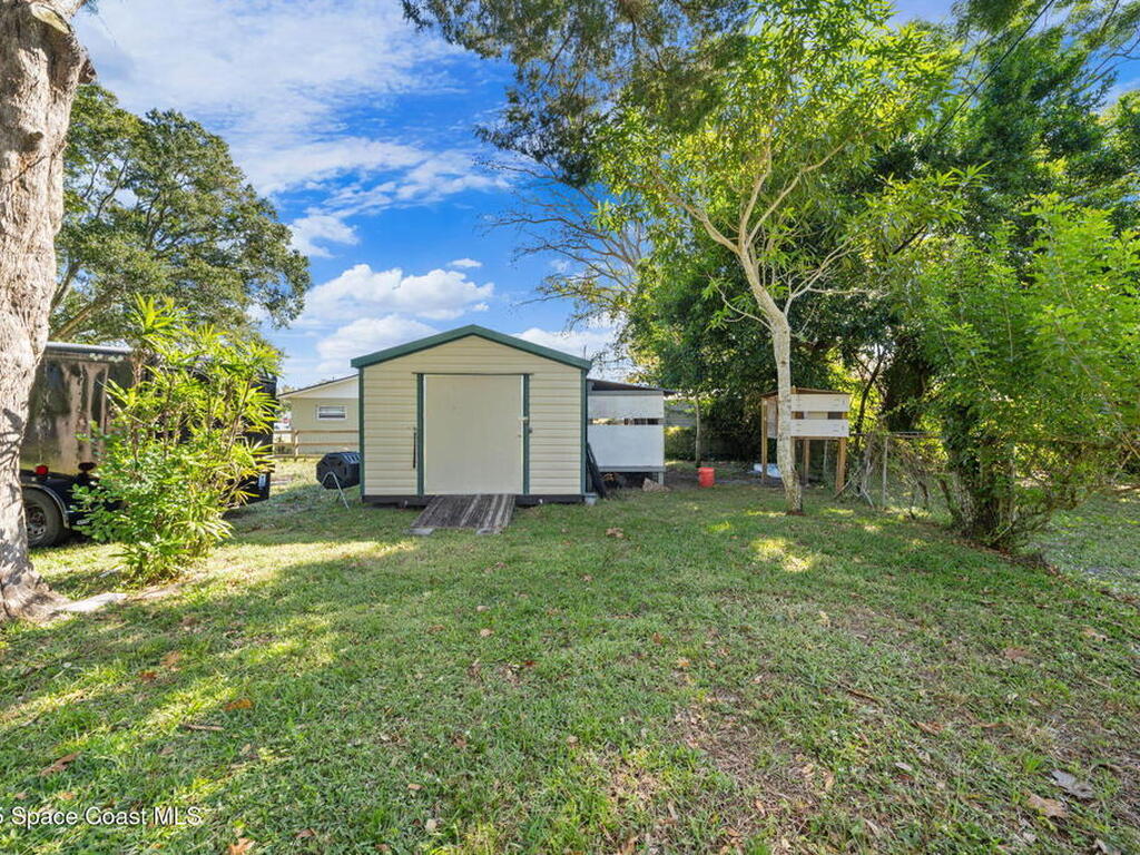 Great 3 bedroom 2 bath home in Titusville! Welcome to this solid concrete block home on a corner lot in a quiet cul-de-sac. Enjoy peace of mind with a metal roof and modern updates including granite countertops and luxury vinyl flooring. The large fenced backyard offers plenty of space to relax and play, complete with a storage shed and chicken coop. No HOA means freedom to make this home your own! Conveniently located near Kennedy Space Center, SpaceX, Blue Origin, Port Canaveral and area beaches, this home is ideal for first-time buyers or anyone seeking comfort and convenience in a established neighborhood.