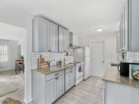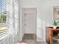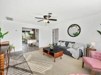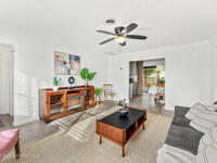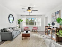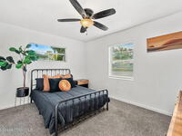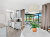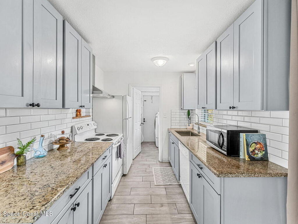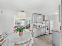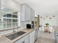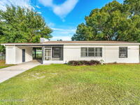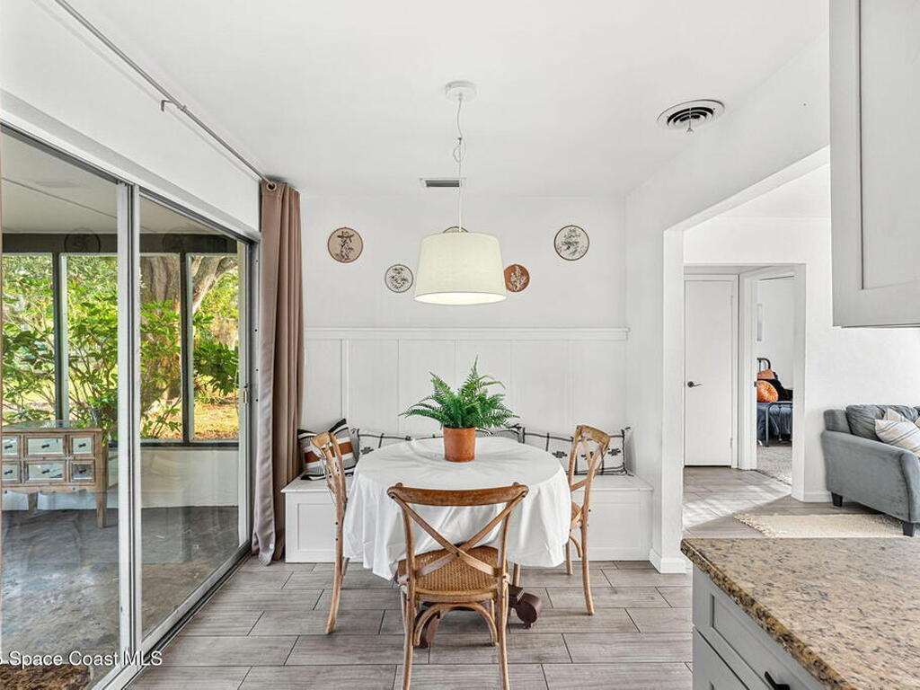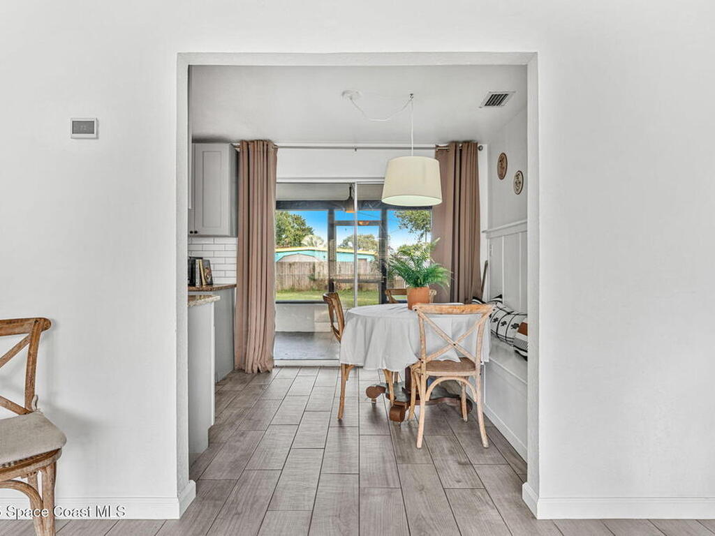 This charming 3 bedroom 2 bath has recent updates including newer kitchen cabinets & wood look tile in kitchen and living areas, New interior and Exterior Paint, New toilet in primary bathroom and new vanity and fixtures in secondary bathroom, Wainscoting in a kitchen nook with built in bench seating with storage underneath. New roof in 2023, Updated Electrical Panel in 2023, Large fully fenced in back yard with gate for all your toys, perfect for kids, fur babies & a pool! Brand new screen enclosure in front of the house by the front door, and large screened in back porch, NEW HVAC system. Tankless Gas hot water heater. Small storage area by the carport, Interior laundry room, and new modern Black and White exterior paint.