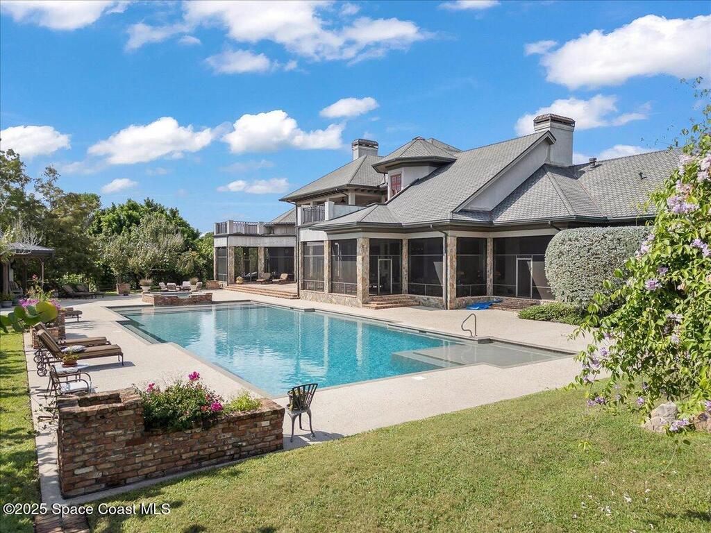 Welcome to 586 Wethersfield Place, an unparalleled luxury sanctuary nestled in the heart of Melbourne, Florida. This exquisite property redefines opulence offering discerning buyers a unique blend of grandeur and privacy. A Masterpiece of Architectural Excellence and constructed with the utmost attention to detail, this property stands proudly on a solid concrete poured block foundation, meticulously reinforced with double steel rebar ensuring both strength and security. Imagine waking up to the serene views of a protected wildlife preserve while enjoying complete privacy on this north-south-oriented lot. The award-winning landscape, designed by Susan Hall, enhances the beauty of this estate with antique, reclaimed Chicago brick adding layers of history and character. Dive into relaxation with your own 85, 000-gallon saltwater pool and spa, bathed in sunlight for 12 hours daily, yet cleverly designed to keep the home cool.