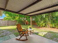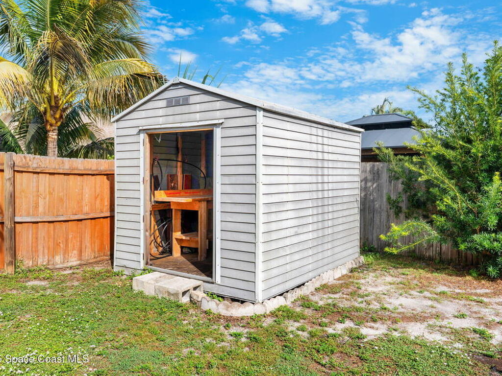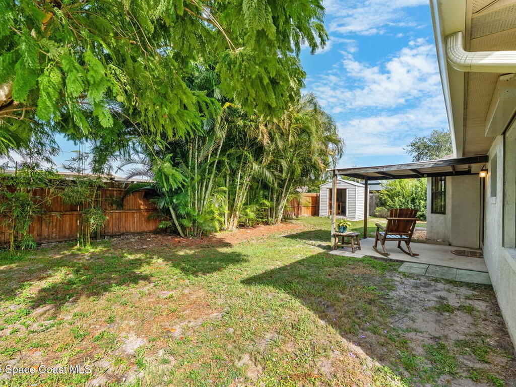 New Roof! Tropical Backyard and Move-In Ready Comfort w/ NO HOA! This beautifully cared-for home offers an open, airy layout that feels bright and welcoming from the moment you step inside. The spacious living and dining areas feature hardwood and tile flooring along with electric hurricane shutters for added peace of mind. The kitchen is equipped with granite counter tops, stainless steel appliances, an eat-in area and ample cabinet space. The entire interior was painted in 2025 and all bedrooms include new carpet (2025) and the primary suite features a walk-in closet. The exterior has fresh paint, with updated landscaping and subtle up-lighting adding to the home's curb appeal. Step outside to your private, fully fenced tropical oasis with fruit-bearing trees including blueberry and fig! A storage shed conveys, and there's no HOA. With a new roof (2023), newer HVAC (2019) and a fantastic yard, this move-in ready home is THE perfect blend of comfort, character and Florida charm!