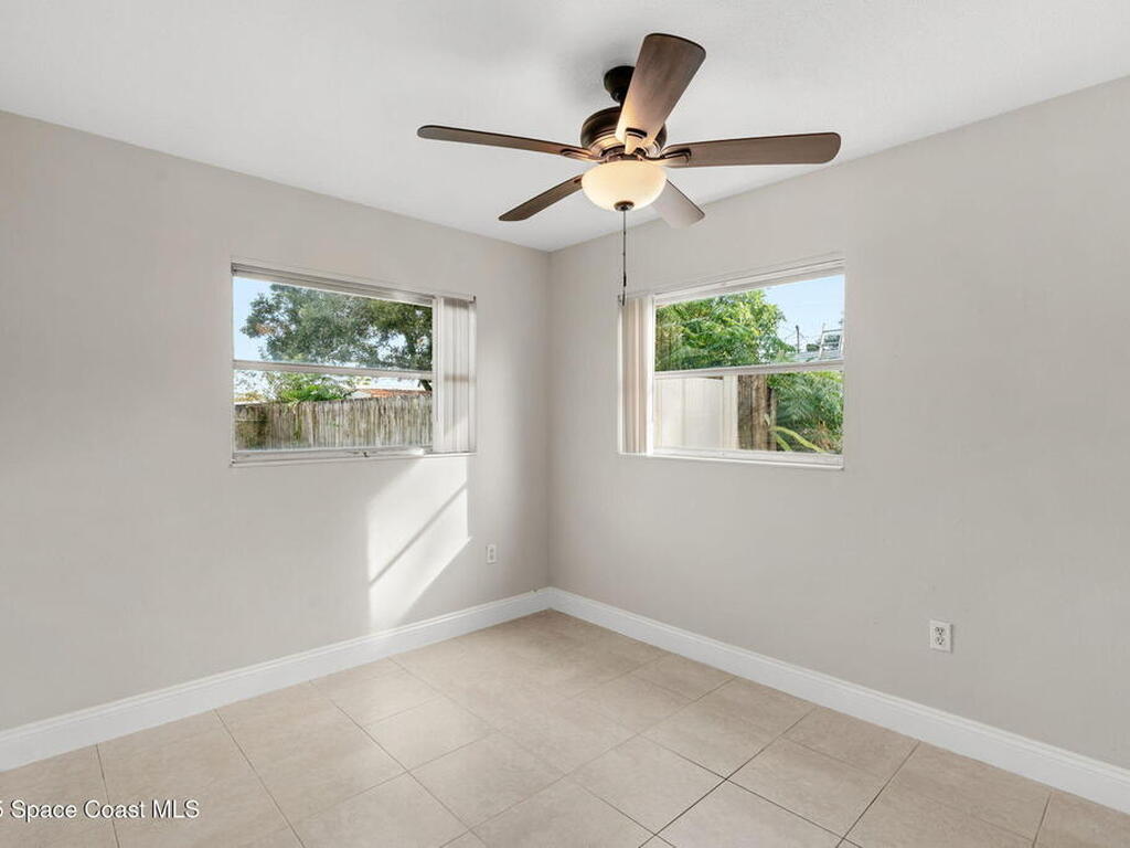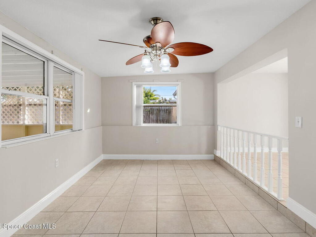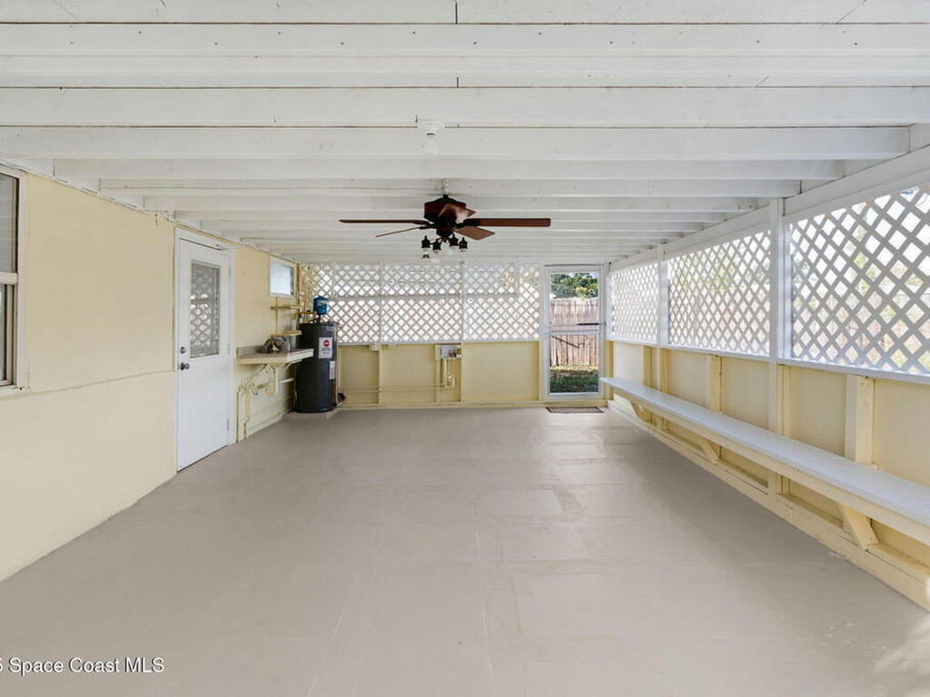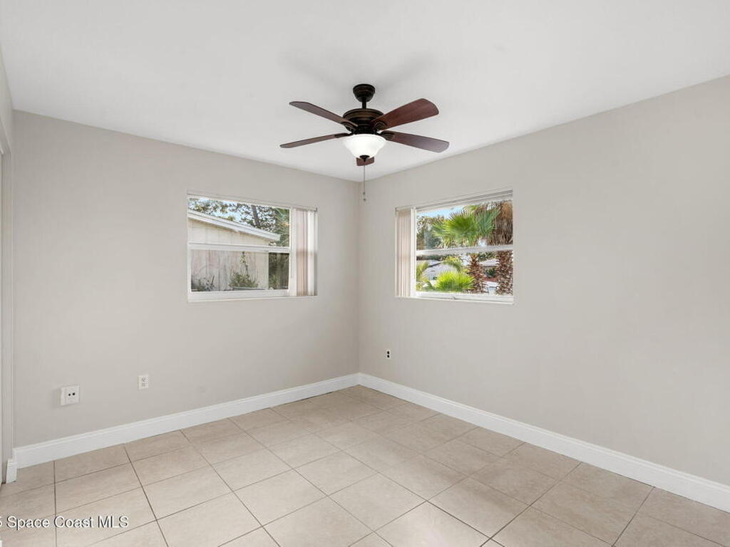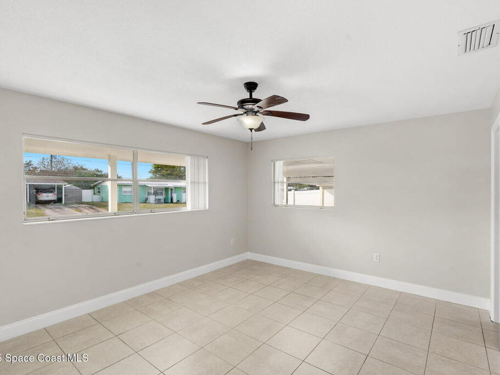 Move-in ready and perfectly low-maintenance, this 3-bed + office, 2-bath home in Melbourne's no-HOA Leewood Forest offers a bright, open layout with tile floors throughout. The living and dining areas flow into an updated kitchen featuring white cabinetry, a mosaic backsplash, and a center island.The split floor plan provides a private primary suite with a tiled walk-in shower, while two guest bedrooms share an updated full bath. Major upgrades include a new roof (2025), AC (2022), and water heater (2018) for added peace of mind.Out back, a spacious covered patio with lattice privacy walls, a ceiling fan, and built-in bench seating creates the perfect spot to relax or entertain. This home delivers easy Florida living in a prime, no-HOA location.