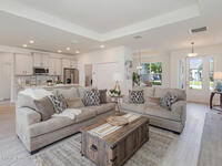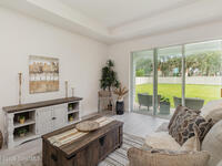 SELLER IS OFFERING $10k IN CLOSING COST ASSISTANCE. Experience refined living in this 3 bedroom, 2 bath home located in the gated community of Country Club Estates. 'It offers an elegant stone-accented elevation on an oversized lot, surrounded by a neighborhood of mature oaks for a serene setting. A brand new roof was just completed, adding value and peace of mind. Inside, enjoy soaring 9'4'' ceilings with tray details in the Great Room, Dining Nook, Master Suite, and Flex Room. The Great Room features upgraded 9' sliding glass doors that open to a covered porch--perfect for relaxing or entertaining. The kitchen includes quartz countertops and upgraded cabinetry, carried through to both baths. The Master Suite offers two spacious walk-in closets and dual sinks. Energy-efficient features include low-E double-pane windows and an efficient A/C system. Washer and dryer included. Minutes to shopping, dining, golf, and beaches--live the Florida lifestyle. photos of home when it was staged