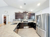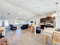 Beautiful 3-bedroom, 2-bath, 2-car garage Adams Home 1540 model built in 2022! This modern home features an inviting open floor plan with vaulted ceilings and abundant natural light. The kitchen and living areas flow seamlessly, perfect for entertaining or relaxing. Enjoy peace of mind with a full security system and energy savings from solar panels. The primary suite offers comfort and style, while Levolor blinds add a refined touch throughout. Step outside to a fully fenced backyard with both a cozy screened porch and an open front porch, each finished with durable poly coating. The outdoor space also includes a paved patio plus an extra 10x12 paved pad wired with 220V--ready for your hot tub! The garage floor is poly-coated for easy maintenance. Additional features include an aerobic septic system for efficiency and long-term value. This move-in ready home blends quality construction with modern upgrades--perfect for today's lifestyle!