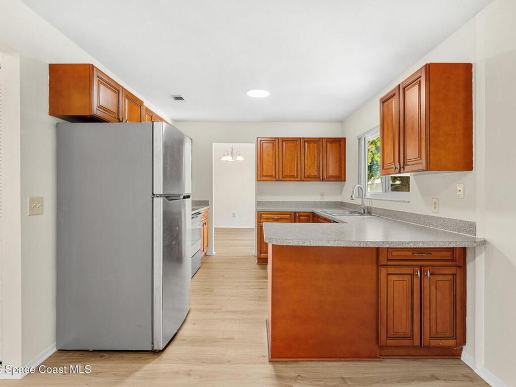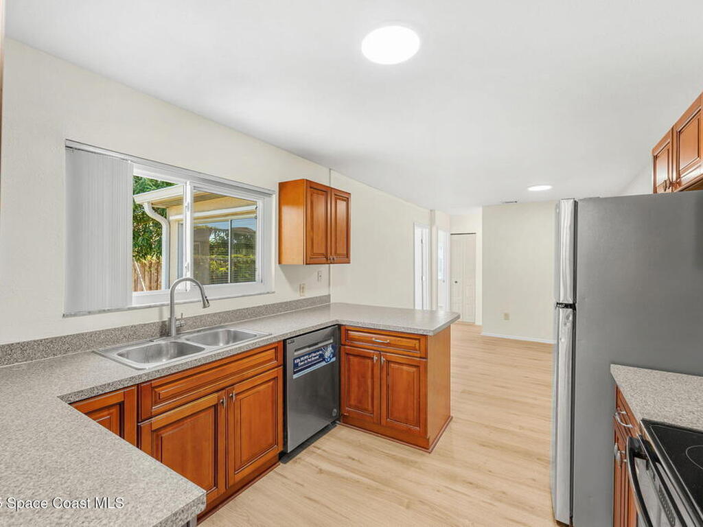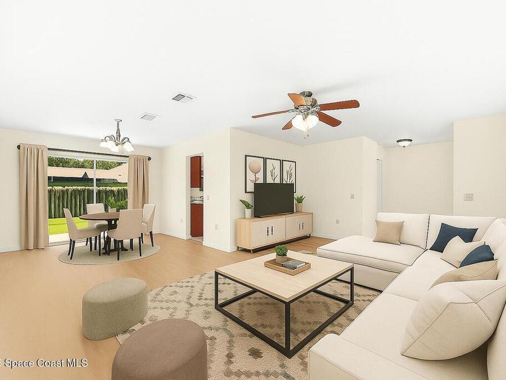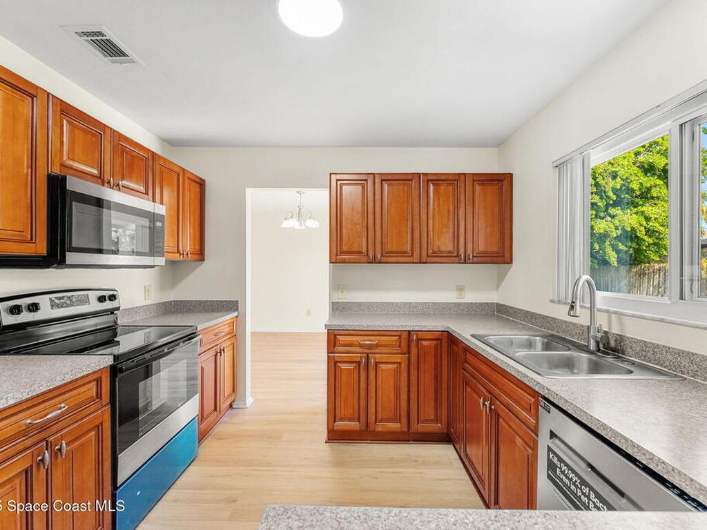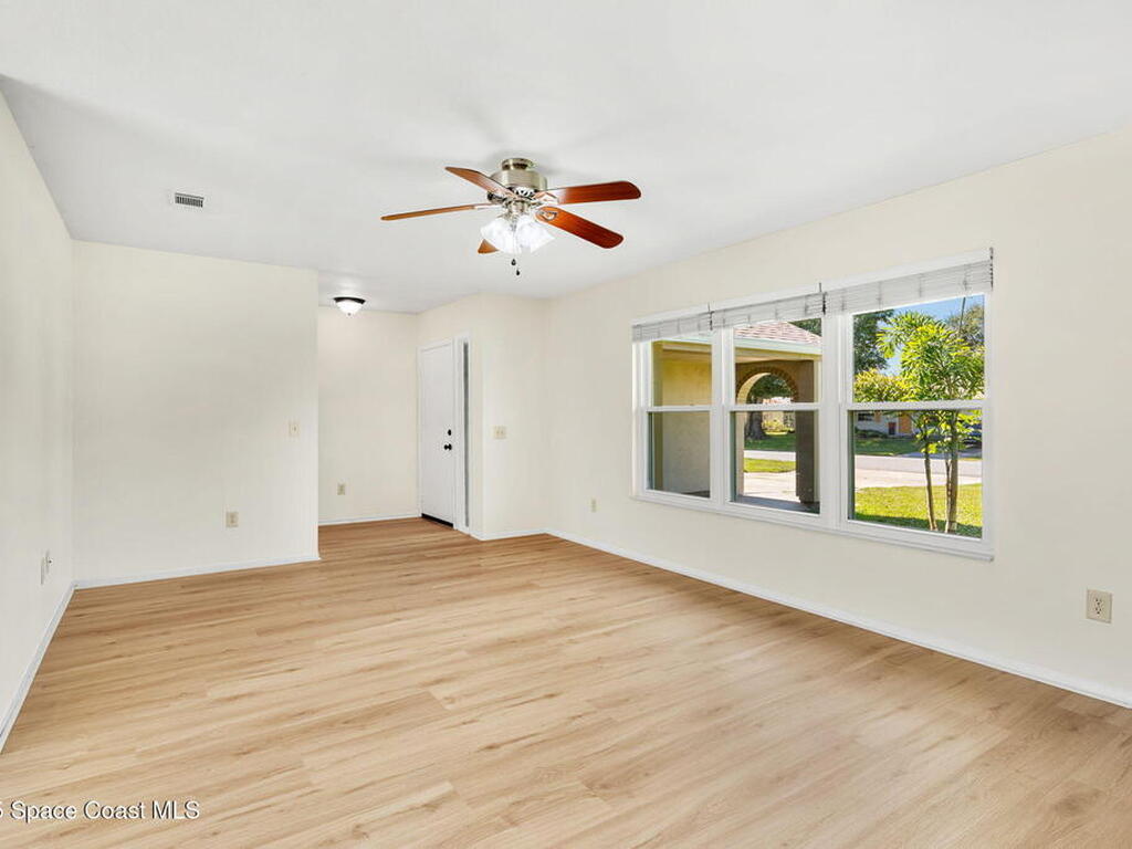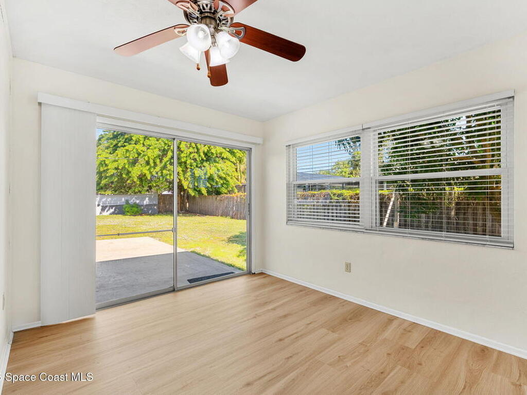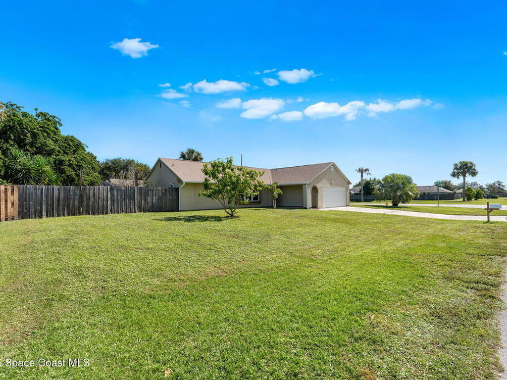 Fall in love with this thoughtfully updated 3-bedroom, 2-bathroom home offering an additional office/flex space -perfect for work, fitness, hobbies, or a 4th bedroom! Situated on an oversized 0.29-acre corner lot in the coveted Port Malabar School District w/ no HOA! Move-in-ready! Enjoy luxury vinyl plank flooring throughout -no carpet! The spacious kitchen offers Stainless appliances-the oven/range & dishwasher are brand new! Major upgrades include a NEW ROOF (2024), NEW HVAC (2025), and energy-efficient double-paned windows. The expansive fenced backyard with 2 mango trees and one peach tree is ideal for kids, pets, and outdoor entertaining. With its modern updates, generous layout, and convenient location just minutes to L3Harris, Turkey Creek Sanctuary Park, and Brevard's beautiful beaches!