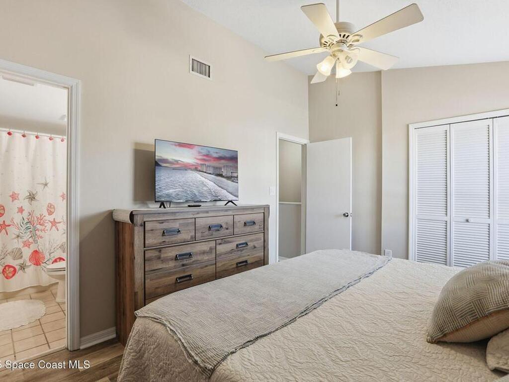 Bright & updated two bedroom, two and a half bath condo just steps from the ocean in beautiful Cape Canaveral Florida. Enjoy a modern kitchen, refreshed bathrooms, and a spacious great room with glass sliders opening to a charming paver patio. This resort-style community offers 3 pools, private beach access, tennis courts, a clubhouse, ocean observation deck and an exercise room-ideal for coastal living at it's finest!