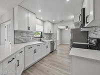 Check out this beautifully updated 3-bedroom, 2-bath home that's move-in ready and full of upgrades! Featuring a 2023 standing seam metal roof, this home offers lasting durability and peace of mind. Enjoy cooking in the brand-new kitchen with modern finishes, and relax in the updated master bath with stylish details throughout. The home boasts new vinyl plank flooring, new hot water heater, and 2021 AC for comfort and efficiency. All appliances are new or like new, including washer and dryer.The privacy-fenced backyard offers plenty of space for outdoor living, with parking for a boat or RV on this corner lot. Conveniently located and ready for its new owner--schedule your showing today!