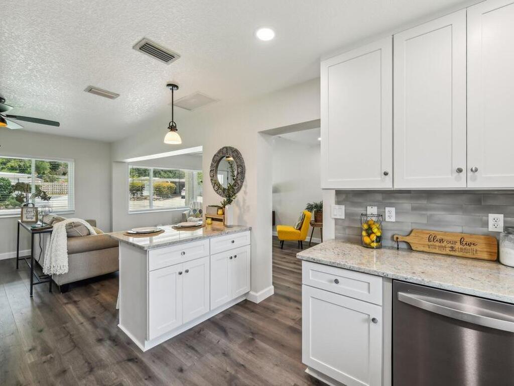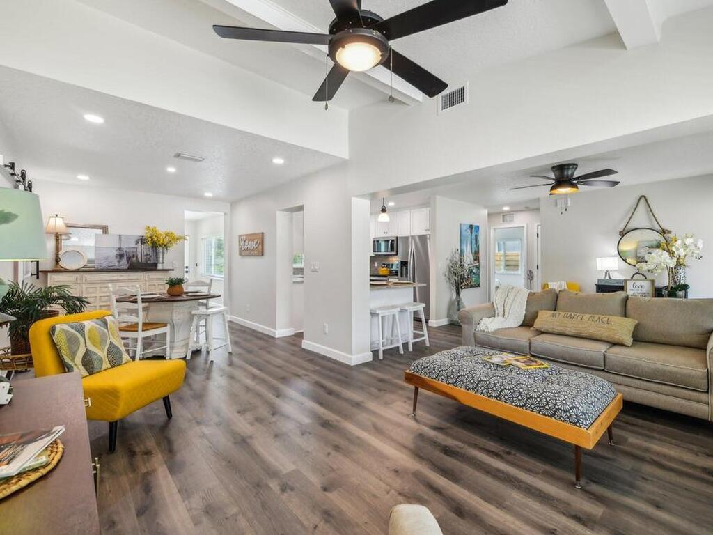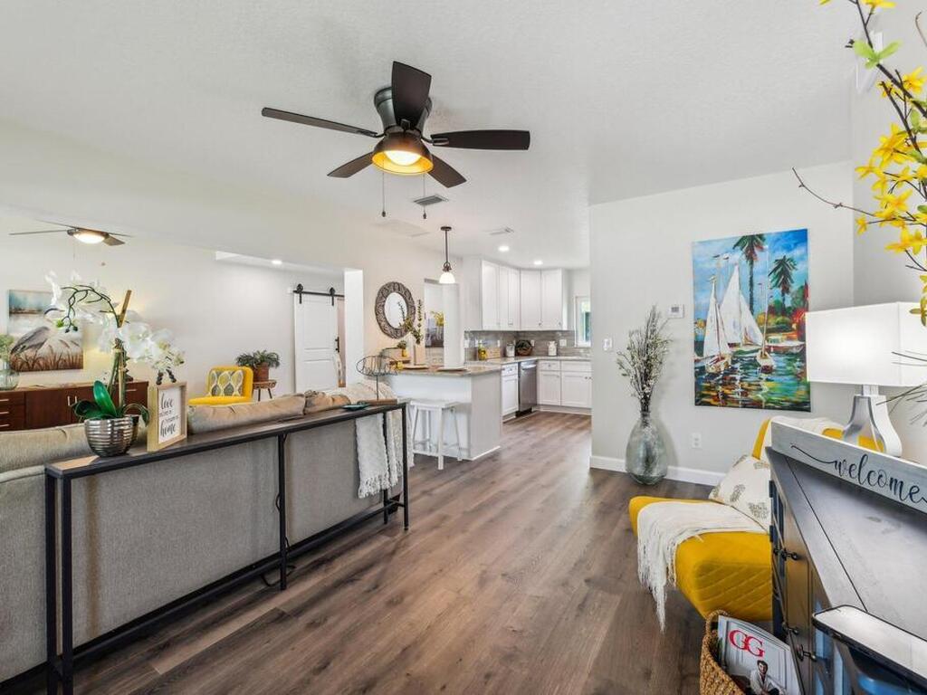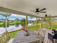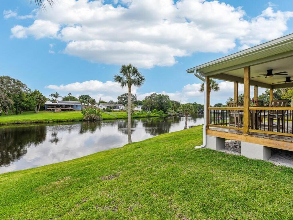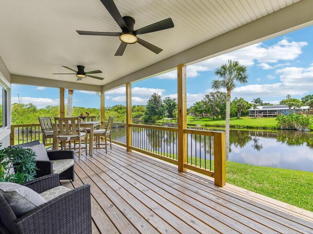 Tucked away at the end of a peaceful cul-de-sac, this completely renovated waterfront gem (including plumbing, electrical, AC and roof) offers the perfect blend of modern luxury and Florida charm. This home offers a light, bright, and open 3-bedroom, 2-bath split plan retreat with an inside laundry room. The upgraded kitchen seamlessly connects to the spacious family room, high-end Pergo flooring flows throughout an airy, open concept design which includes a vaulted master suite with stunning water views. Perched along the dredged Elbow Creek, the property provides easy access for larger boats to the Indian River, with a fixed bridge offering over 20 feet of clearance. There is ample space on this third of an acre lot to install your own dock and boat lift. Spend your mornings on the expansive back porch marveling at gentle manatees and playful dolphins and savor breathtaking sunrises as the Atlantic lights up the horizon. Quick access by boat or car to Frigate's