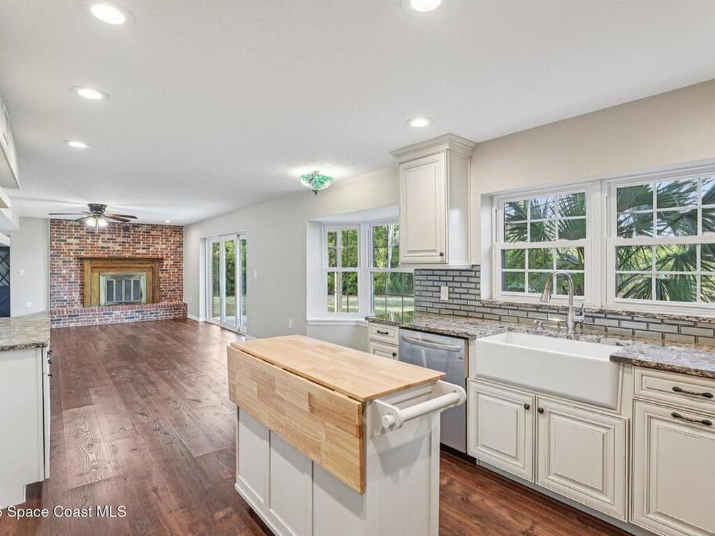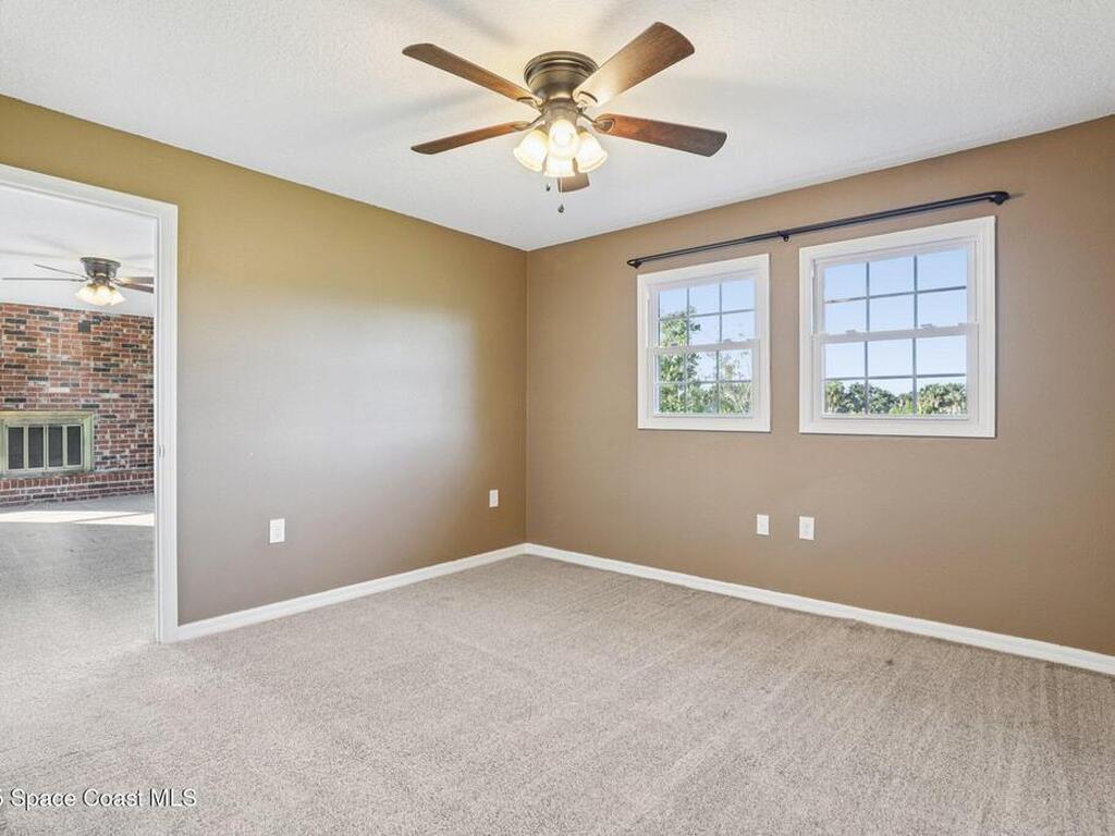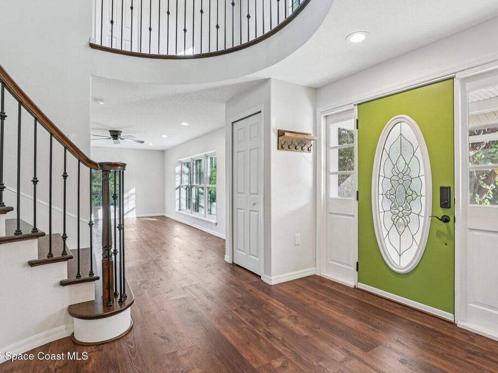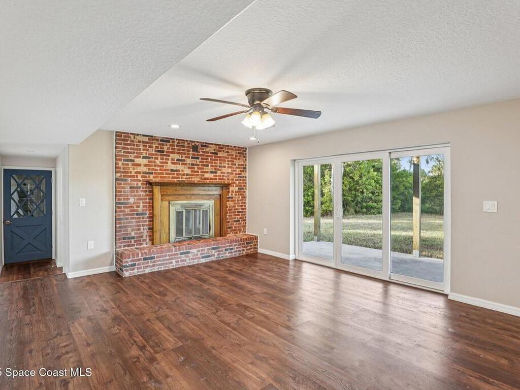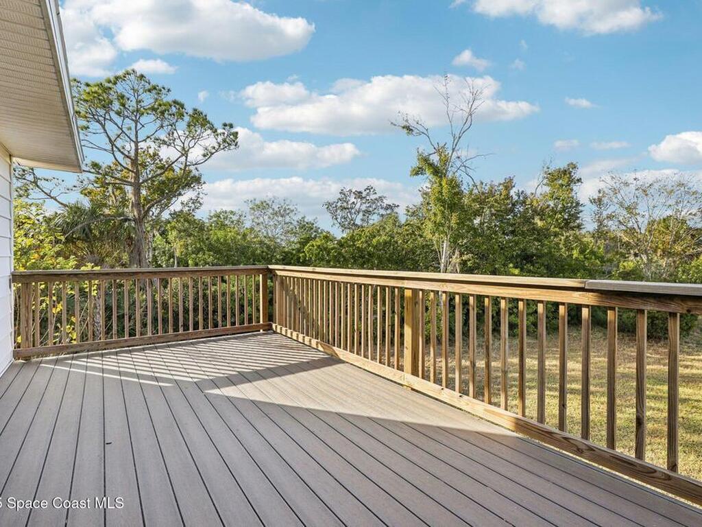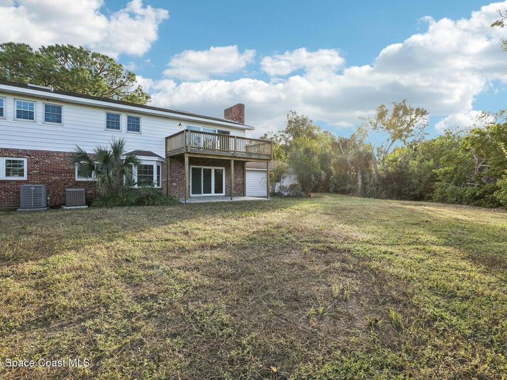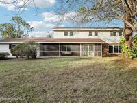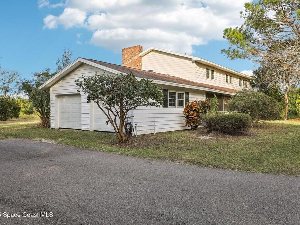Welcome to this beautifully renovated two-story residence offering 3, 055 sq. ft. of living space under A/C, set on a private 2.01-acre lot in desirable North Merritt Island. This spacious home features 5 bedrooms and 3 full bathrooms, including four bedrooms and two baths upstairs, plus a downstairs bedroom--ideal for guests or use as a home office--along with a full bath. Completely renovated in 2018, the home includes re-piping, a newer roof, impact windows, and closed-cell foam insulation. A new septic system was installed in 2021. Additional enhancements include an asphalt driveway, screened front lanai, and a newly rebuilt upstairs rear deck--perfect for enjoying spectacular rocket launches right from home. Inside, you'll find an inviting floor plan with an eat-in country kitchen, formal living room, dining room, family room, and indoor laundry room. The washer and dryer convey. The home also offers two fireplaces and a 2-car garage. The expansive lot provides plenty of room for a