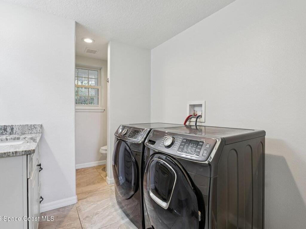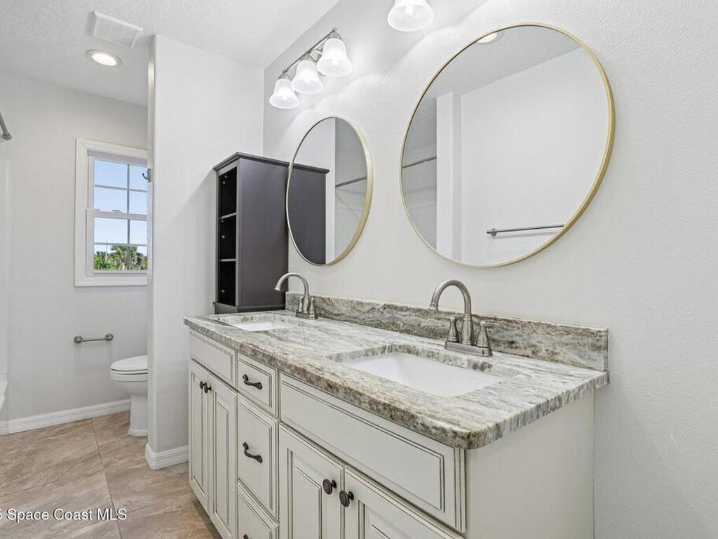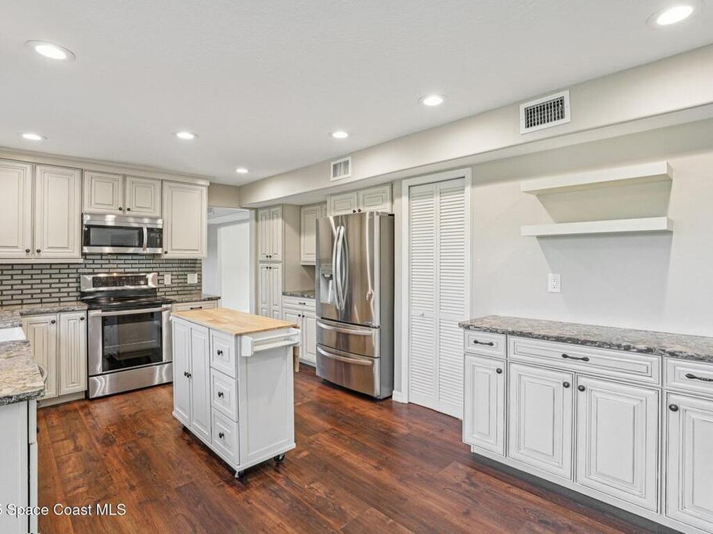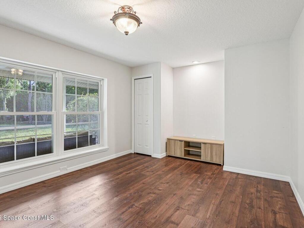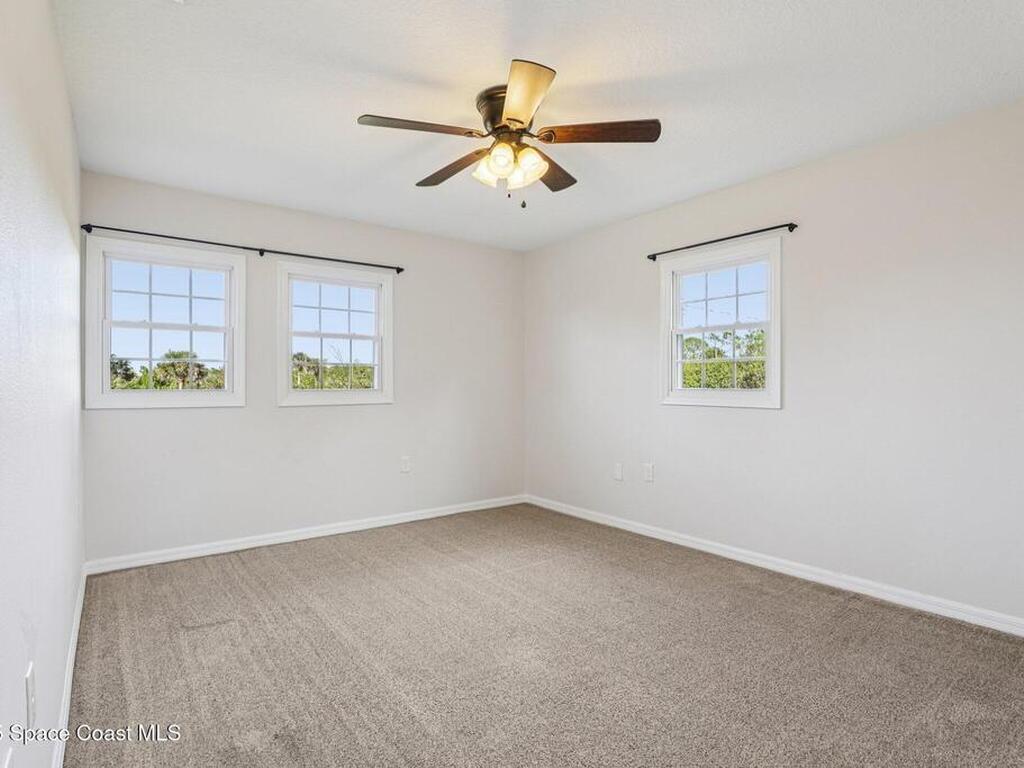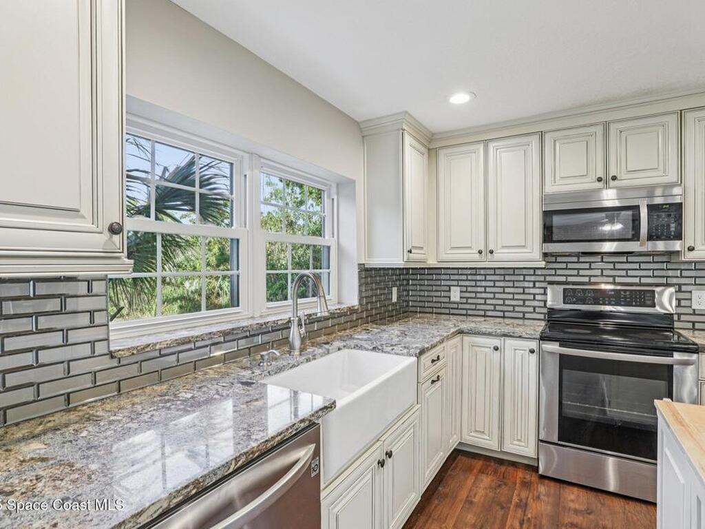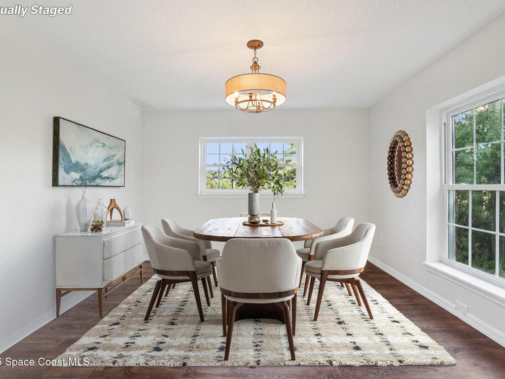 Welcome to this beautifully renovated two-story residence offering 3, 055 sq. ft. of living space under A/C, set on a private 2.01-acre lot in desirable North Merritt Island. This spacious home features 5 bedrooms and 3 full bathrooms, including four bedrooms and two baths upstairs, plus a downstairs bedroom--ideal for guests or use as a home office--along with a full bath. Completely renovated in 2018, the home includes re-piping, a newer roof, impact windows, and closed-cell foam insulation. A new septic system was installed in 2021. Additional enhancements include an asphalt driveway, screened front lanai, and a newly rebuilt upstairs rear deck--perfect for enjoying spectacular rocket launches right from home. Inside, you'll find an inviting floor plan with an eat-in country kitchen, formal living room, dining room, family room, and indoor laundry room. The washer and dryer convey. The home also offers two fireplaces and a 2-car garage. The expansive lot provides plenty of room for a