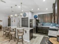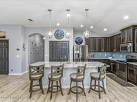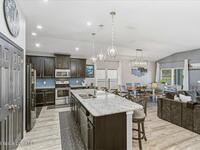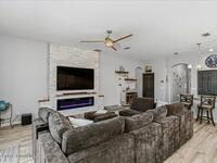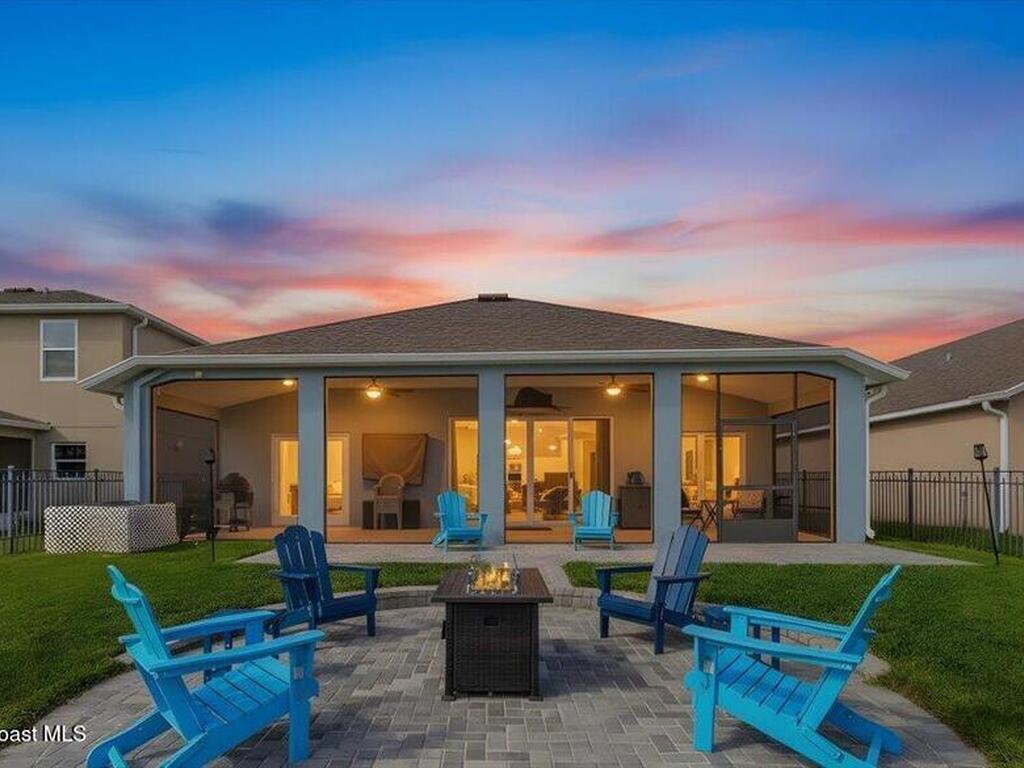 Enjoy the best of Florida living-waterfront views and a bright, updated CBS home in a gated community. Open floorplan, wood-plank laminate flooring, and upgraded lighting create a bright, easy-flow interior. Beautiful kitchen with large island, quartz tops, custom cabinetry, a touchless faucet, smart refrigerator, and new tile backsplash. A stone feature wall with a built-in electric fireplace adds a modern focal point to the living area. Primary suite features a walk-in shower, soaking tub, and a spacious walk-in closet and privacy from the Guest Wing. Enjoy outdoor living in the screened lanai overlooking a manicured, fenced backyard. Newly added pavers, a deck, and lakeside fire-pit area expand the entertaining space. Upgrades include impact windows & doors, painted interior and exterior, garage cabinetry and secondary refrigerator, attic storage with pull-down stairs, new access gates, new gutters & downspouts, hardwired Ring doorbell, hardwired smoke detectors, and click for more