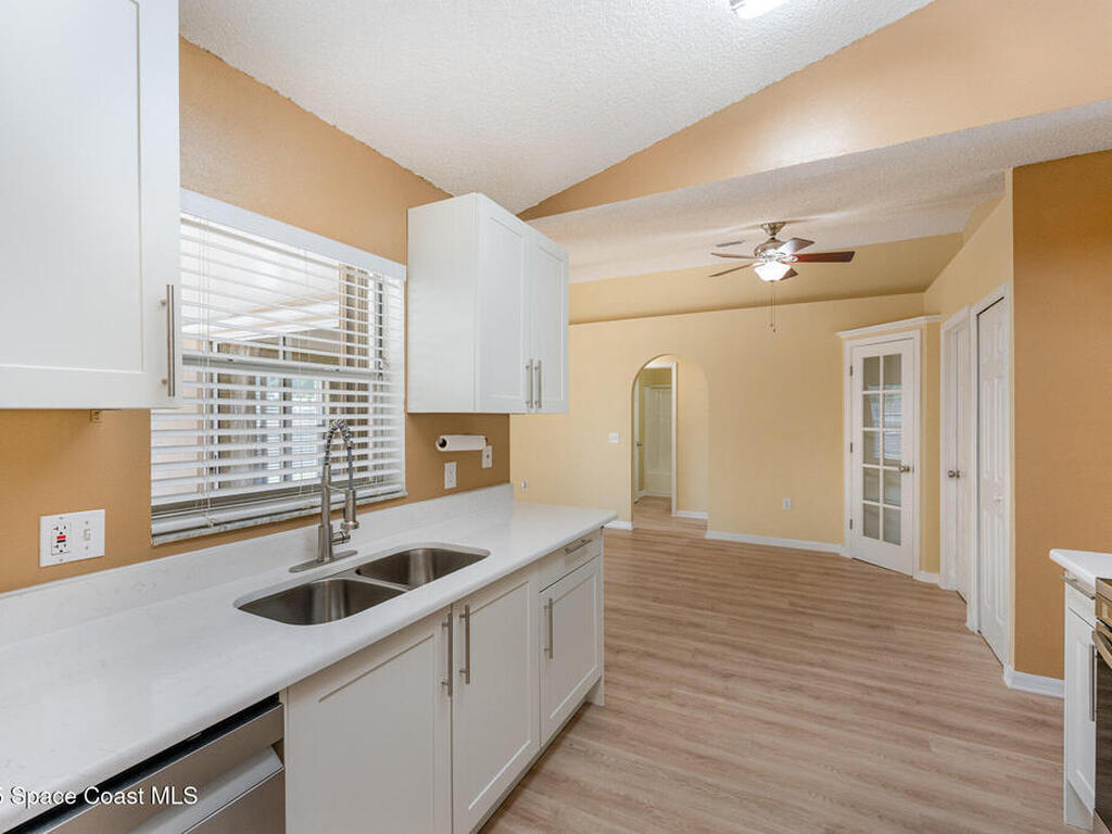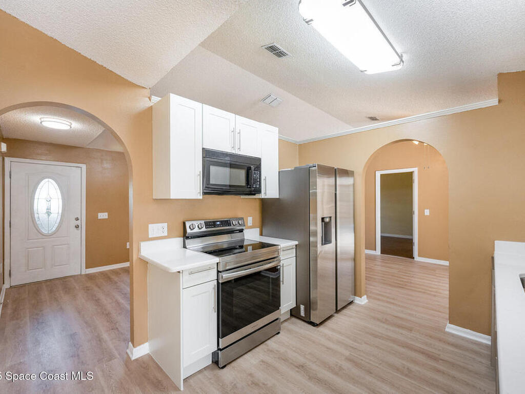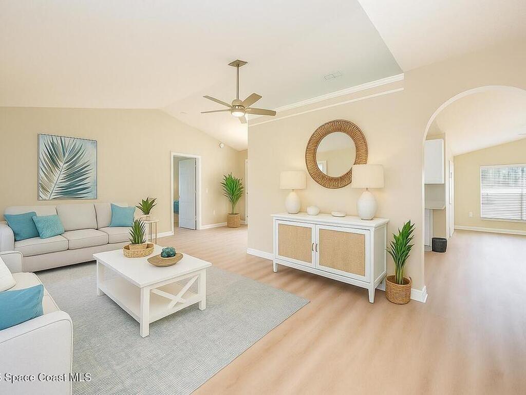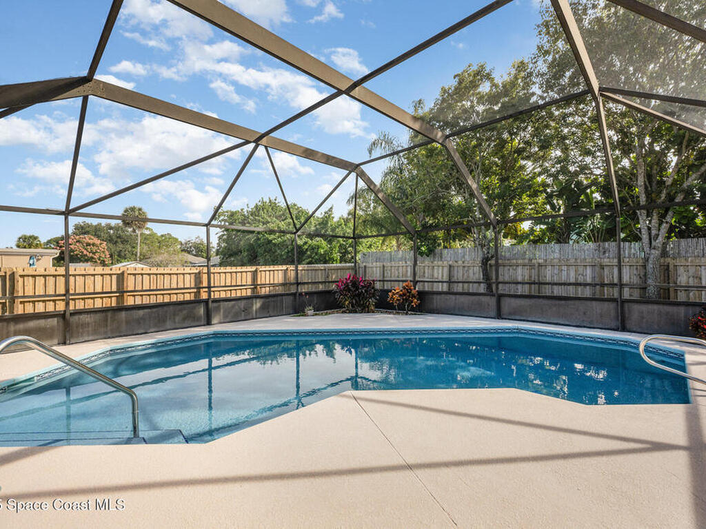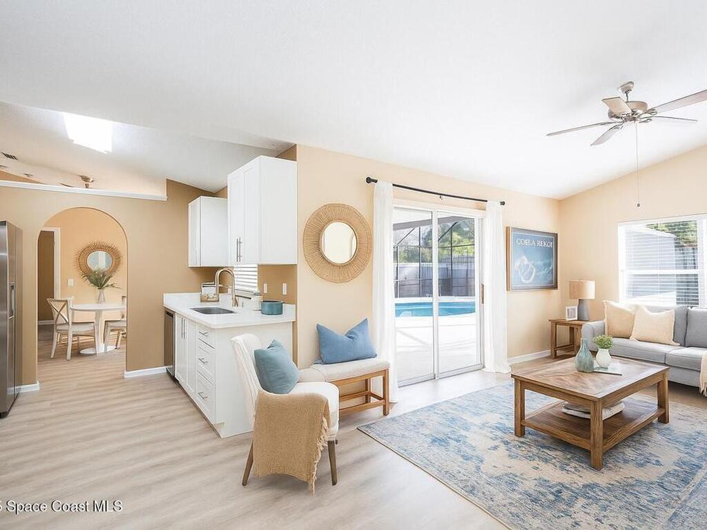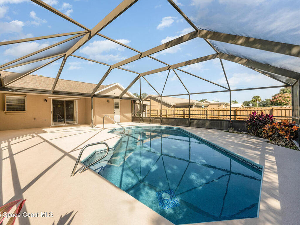 Beautifully updated 3-bedroom, 2-bath concrete block pool home in desirable Port St. John! This turn key home features new LVP flooring, fresh exterior paint, kitchen and bathroom cabinetry, quartz kitchen countertops, appliances, commodes, light fixtures, water heater, and garage door opener. Major big-ticket improvements include a whole-house repipe and a roof in 2015. The bright, open layout flows to a screened lanai overlooking the private in-ground pool--perfect for year-round Florida living. Located close to the river, beaches, schools, shopping, and dining, and only 15 minutes to Kennedy Space Center, 30 minutes to Orlando International Airport, and 40 minutes to theme parks. Hurricane shutters, durable block construction, and a 2-car garage complete this fantastic Space Coast home! Some photos are AI Generated for staging, decor and seasonal potential, they are labelled with AI in photo description.