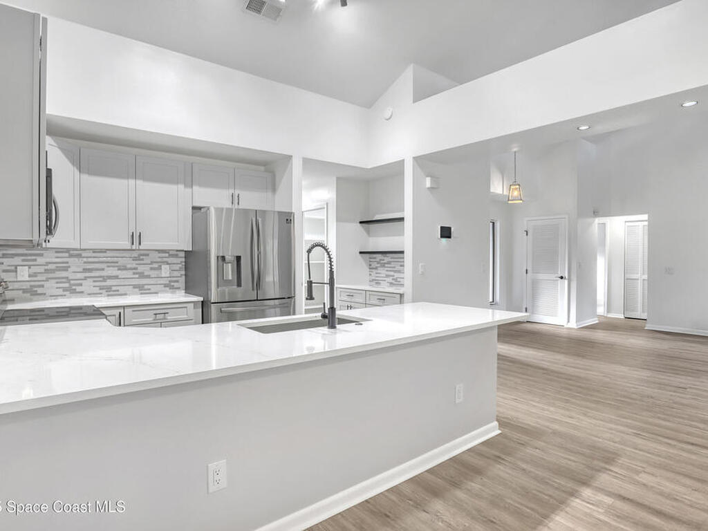 Like New! Exquisitely remodeled, and re-roofed, this beautiful 3BR/2BA/2GA single story house, with its long, sweeping driveway, sits atop a lush, private, oversized 0.43 acre lot with room for a pool, at a bend in the road, waiting for you to make it home. New LVP floors. Fully remodeled kitchen including new all wood kitchen cabinets with soft close doors/drawers, quartz countertops, all new Samsung appliances including refrigerator, microwave, dishwasher, oven and stove. Large walk-in-pantry and Butler's Pantry. New Samsung washer and dryer. New Rheem Tankless hot water heater. Fully remodeled master-bath with a double vanity, walk-in-shower and shoe tub with elegant back lighting. Large two-car garage with workbench and shelving. Vivint Smart Home Security System, with 3-cameras, water sensors, smoke and carbon detectors. All new screens on the back lanai. Freshly painted inside and out. New Lighting Fixtures and Ceiling Fans throughout. Schedule your showing today!