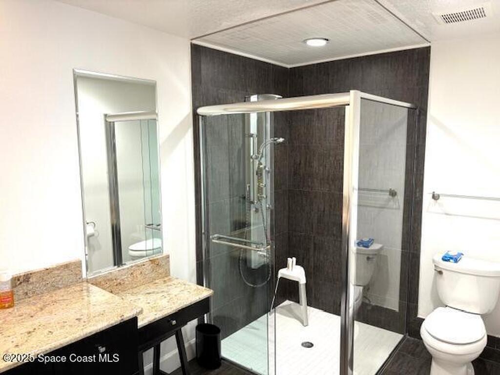 Nestled within a unique gated community in the heart of Melbourne, this 2.46-acre estate offers a spacious, multigenerational home designed to accommodate multiple families. Enjoy a game of tennis on your private court, cool off in the 18x40 pool, or relax in the spa (note: spa leaks) on your private screened patio. The 40x27 living room features a fireplace and wet bar, opening to the screened pool area for seamless entertaining. Children can enjoy TV time in the 28x21 family room located on the opposite side of the house. The three-way split floor plan, with separate entrances, hosts five primary suites and a study, providing room and privacy for family, extended family, and guests. The eat-in kitchen (25x23) and formal dining room (18x13) are perfect for family meals and entertaining.