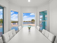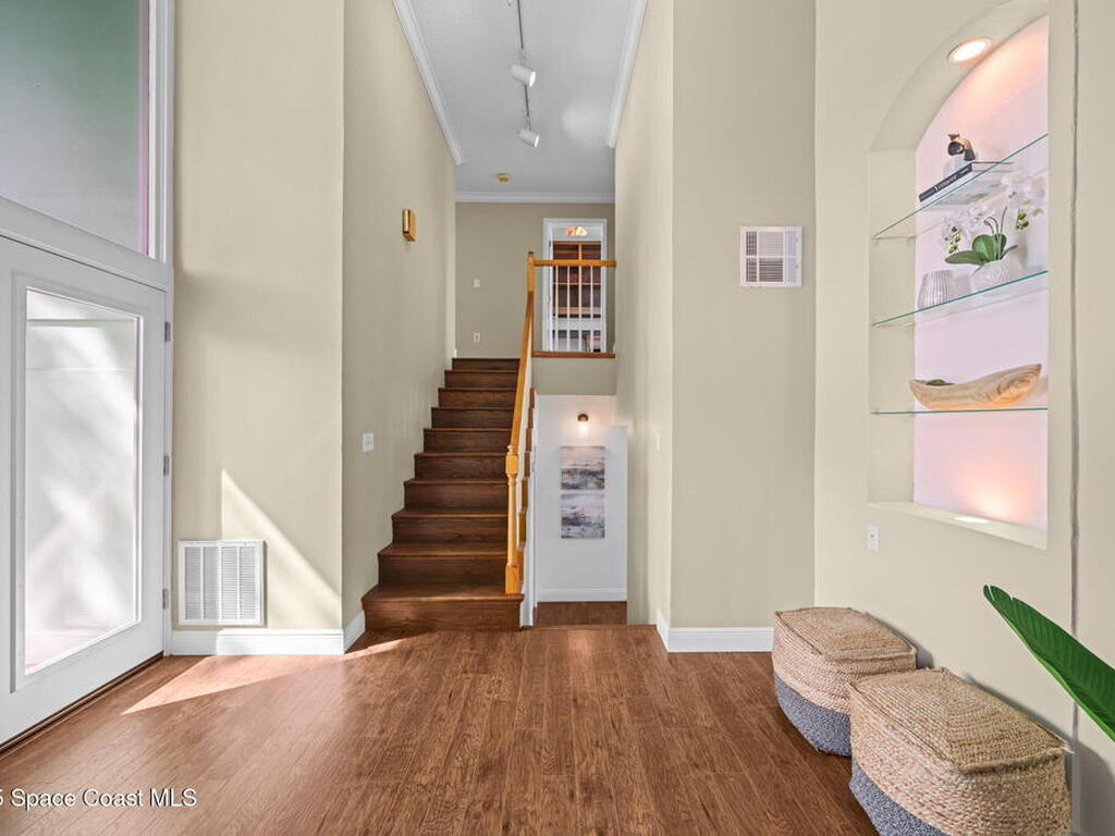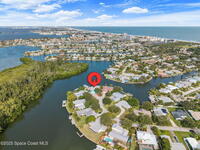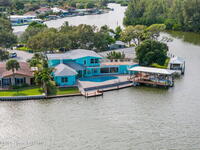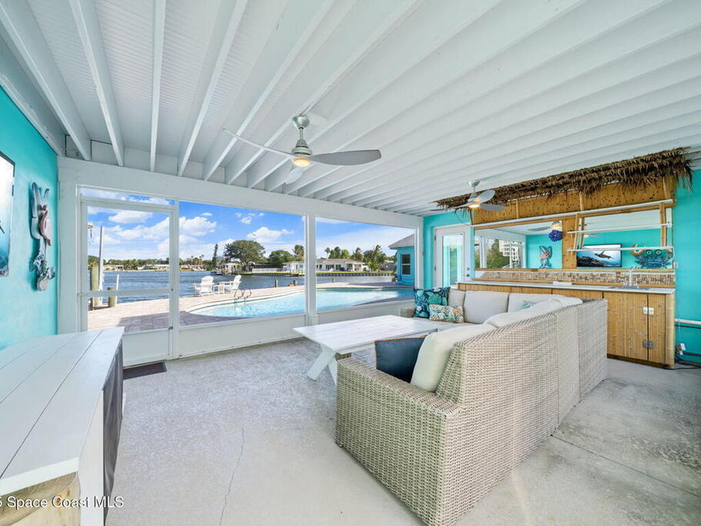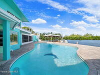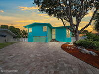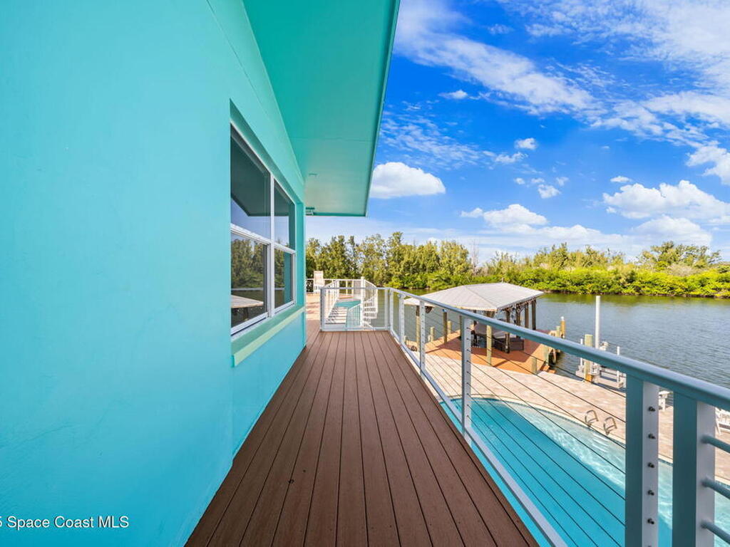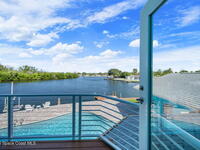 Your waterfront playground awaits! Enjoy 140 feet of direct waterfront with a heated pool, outdoor wet bar, and rooftop deck perfect for sunset views. Watch dolphins, manatees, and boats glide by or head out from your private dock with 10, 000 lb boat and jet ski lifts. The thoughtful floor plan offers separate living areas for family and guests, while a fenced yard and quiet cul-de-sac setting provide privacy and peace. Recent updates include a new dock and lifts, custom garage for watercraft and gear, outdoor fitness area, and screened in porch and rooftop deck. With a two-car garage, ample storage, and endless ways to relax or entertain, this home is designed for everyday enjoyment accompanied by a waterfront lifestyle. Move in just in time to host the Cocoa Beach Holiday Boat Parade--front-row waterfront views from your own backyard!