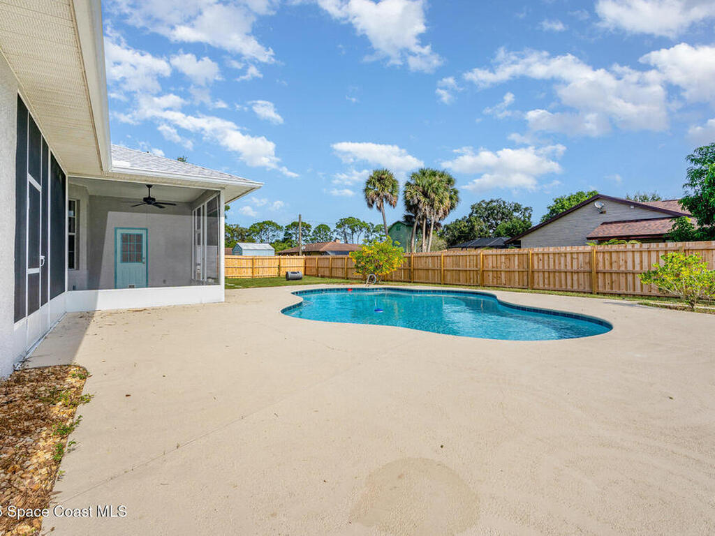 Open and airy, well-maintained pool home in the sought after Lockmar Acres area with no HOA! Large .4 acre lot with a private pool and city water. 4 bedrooms/3 full bathrooms plus flex rooms (see floorpan). Roof 2025 (20 yr transferable warranty), new flooring throughout installed 2025, water heater 2023, double-pane hurricane impact windows on most of the home installed 2018, pool resurfaced 2025, freshly painted interior and pool deck 2025, new kitchen stone countertops, large screened in porch 2024, water heater 2023, fence 2025, AC 2017 (annually maintained for warranty), outdoor pool shower, new well for sprinkler system, underground power (no overhead wires!). Septic pumped 2023. Primary bathroom tub and shower enclosure 2025.Bring your boat, trailer, family and friends....there is room for everyone and everything!!